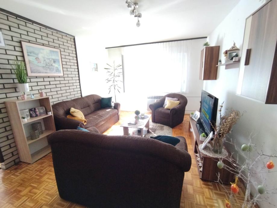 Prodaje se trosobni stan na naselju Andrije Hebranga na 2. katu. Stan se sastoji od spavaće sobe, manje dječije sobe, kupaonice, ostave i kuhinje s blagovaonicom, dnevnog boravka i lođe. Instalacije su mjenjane 2015. g. kad je renovirana kupaonica, a vanjska pvc stolarija je postavljena prošle godine. U kupaonici su brojila za hladnu i toplu vodu, na radijatorima su postavljeni kalorimetri.