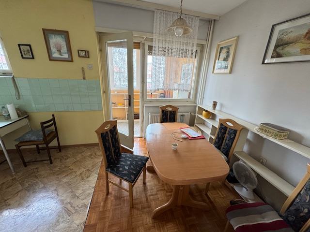 Prodaje se dvosobni stan u blizini bolnice i tržnice. Stan je na prvom katu u zgradi sa liftom. Sastoji se od ulaznog hodnika, spavaće sobe, ostave, kupaonice, kuhinje, blagovaonice, dnevnog boravka i zatvorenog balkona. Lokacija, kat i lift čine ovaj stan atraktivnom nekretninom. U podrumu zgrade je pripadajuće spremište. Stan je vrlo prozračan i svijetao. Kvadratura i raspored omogućavaju preinaku u trosoban. Ugrađeni razdjelnici. Vlasništvo čisto, bez tereta