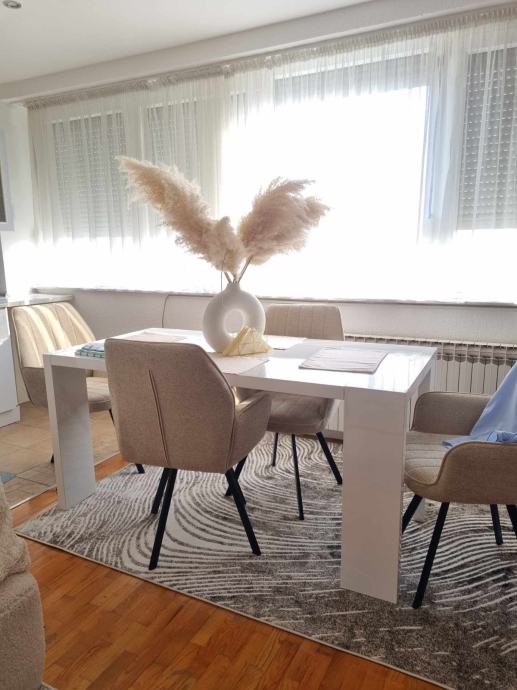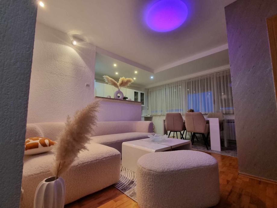 Iznajmljujem stan koji se sastoji od dnevne sobe s kuhinjom, dvije sobe (jedna s velikim krevetom, druga s malim (+ kauč), kupaonice, ostave i hodnika). Stan je na 4.katu a zgrada nema lift. Za više informacija nazvati na 0953928262.