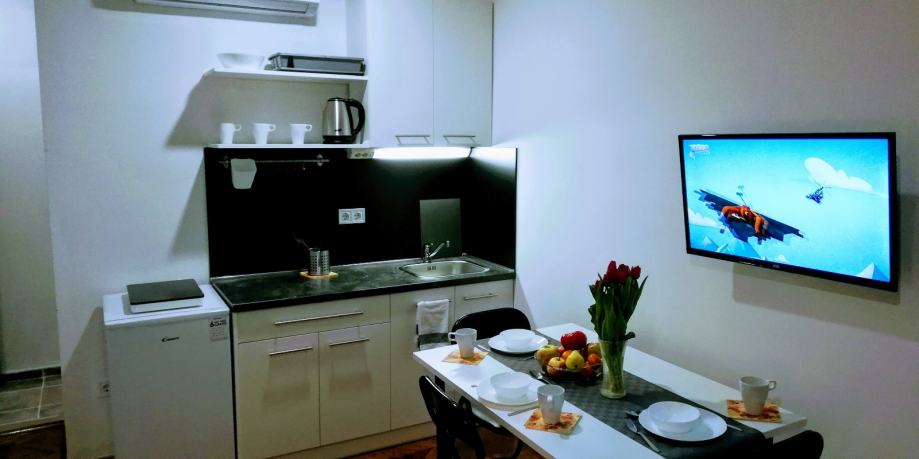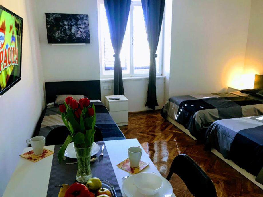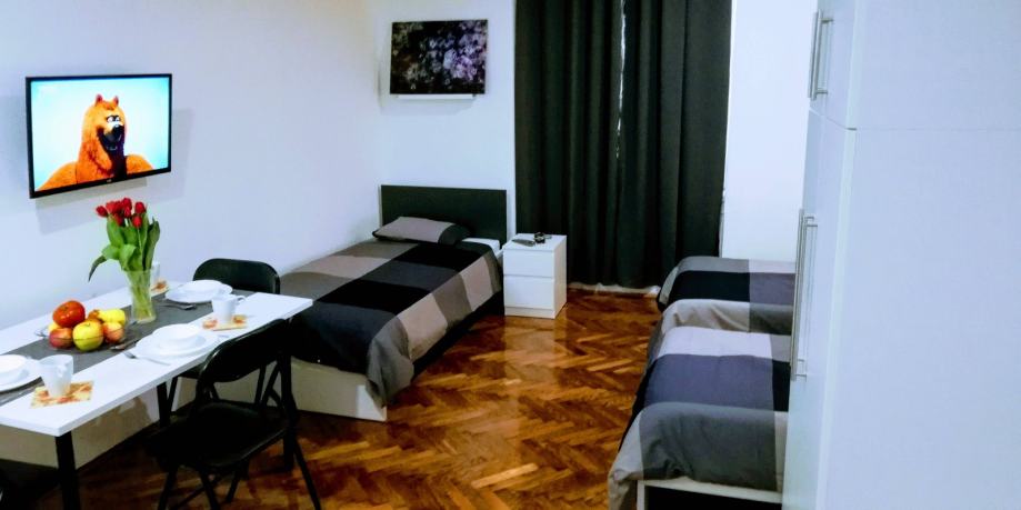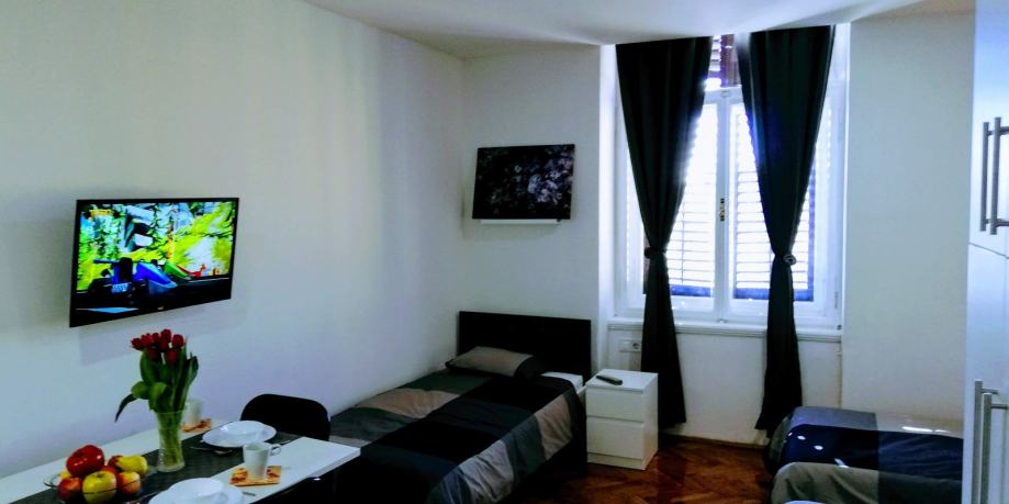Novouređena garsonjera u strogom centru Pule, uz samu Arenu. U cijeni WiFi flat internet, klima, TV sa domaćim i satelitskim programima, nov i moderan namještaj, perilica rublja na raspolaganju. Polog u visini jedne mjesečne najamnine, trajanje najma do 01.04. Struja i voda prema potrošnji.