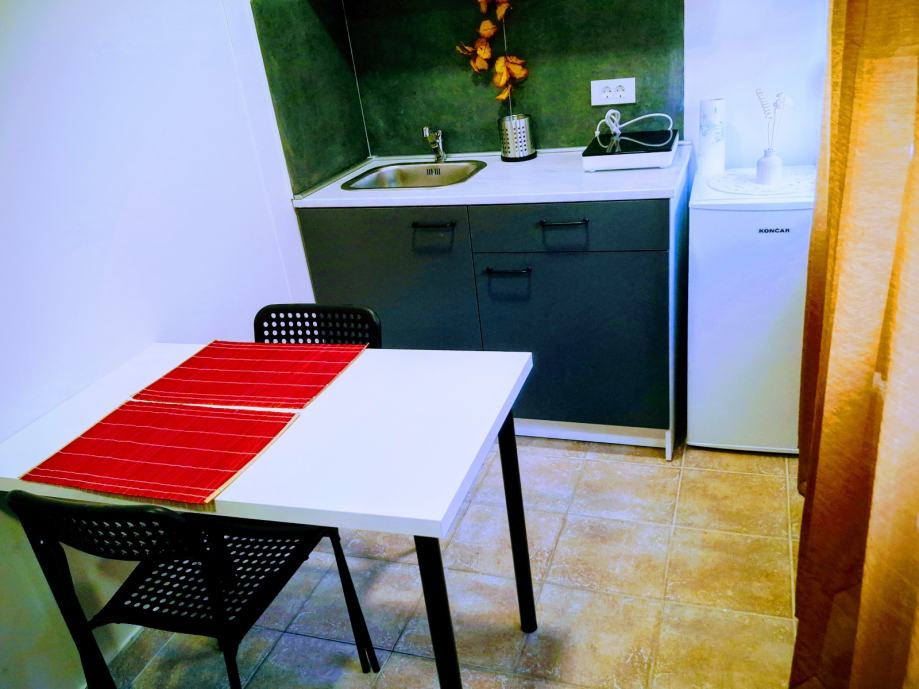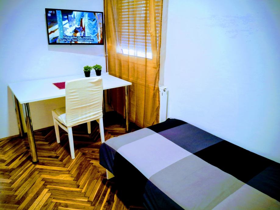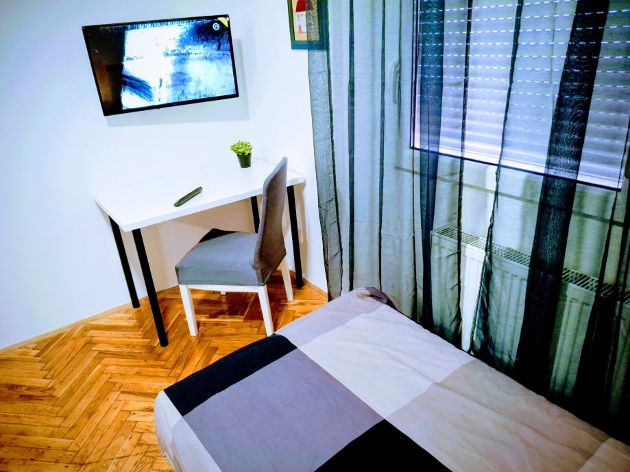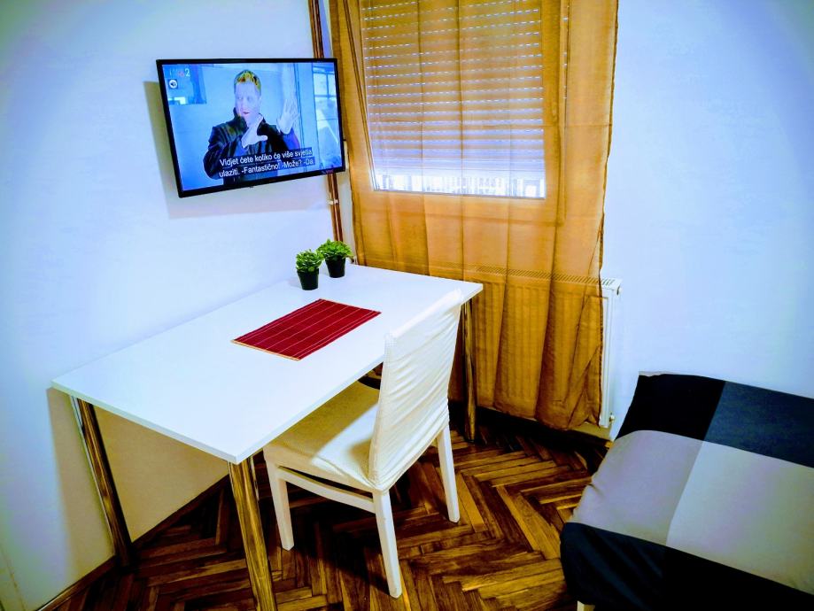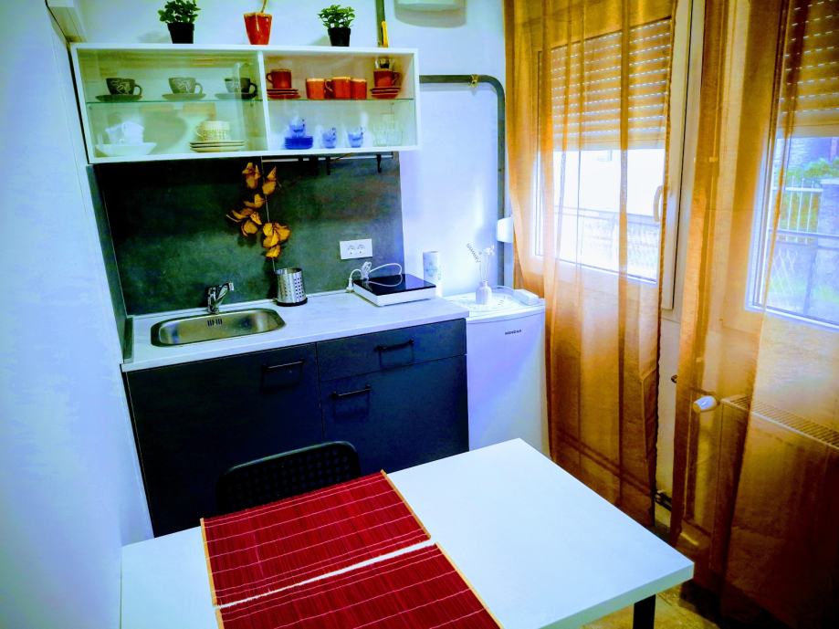 Novouređeni jednosoban stan pored tramvajske stanice Poljanice. Stan se nalazi u prizemnom stambenom objektu koji se sastoji od tri stana namijenjena iznajmljivanju. Površina stana 23m2 za jednu do dvije osobe. Plinsko etažno centralno grijanje, klima, vlastito dvorište i ograđeni parking, TV ravnog ekrana, kuhinja sa indukcijskom pločom, perilica na raspolaganju, pvc stolarija, nov i moderan namještaj.