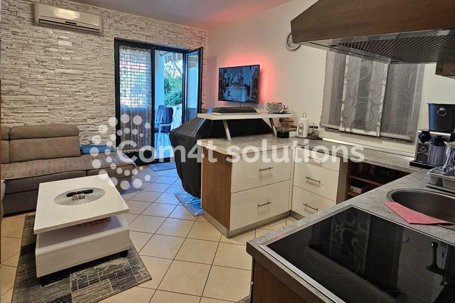 Prodaje se novouređeni trosobni stan u prizemlju stambene zgrade, veličine 61,28 m2 a sastoji se od pretprostora, dnevnog boravka s kuhinjom dvije spavaće sobe, kupaonice, terase, te vrtne terase i parkirnog mjesta.
