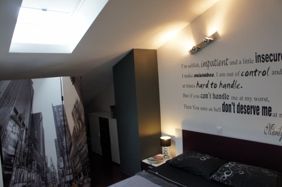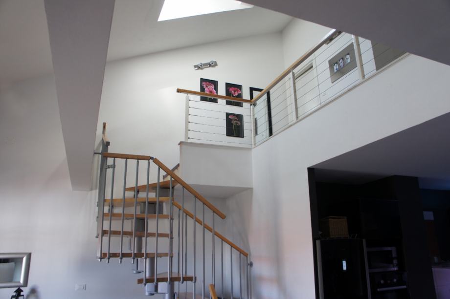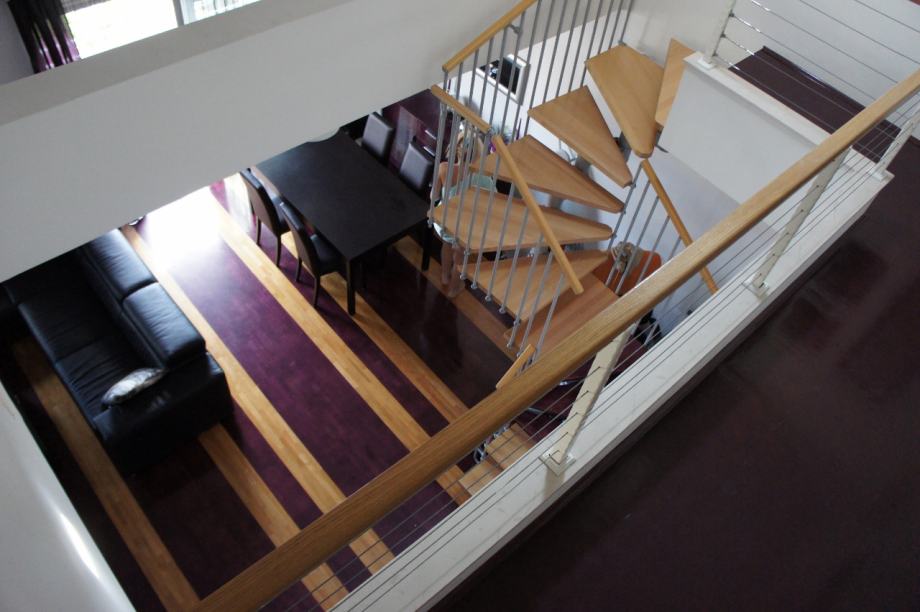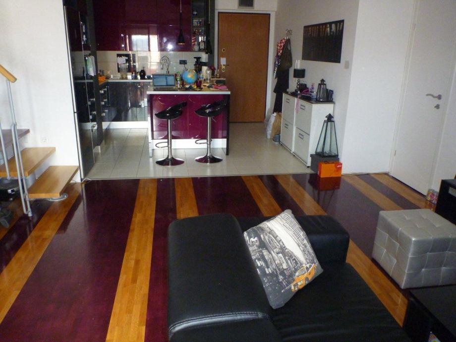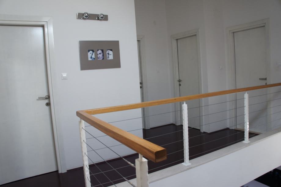 Stan je galerijeskog tipa gradnje te samim time velikog volumena što mu daje dodatnu dozu atraktivnosti. Od svih prostorija, dominira dnevni boravak spojen u open space s kuhinjom i blagovaonom na prvoj etaži, gdje se nalazi i pomoćni WC. Do gornjeg kata, gdje se nalaze 3 spavaće sobe i velika kupaonica, vode otvorene drvene stepenice. Kupaonica ima odvojenu ležeću kadu od tuš kabine. U stanu su postavljena 4 klimatizacijska uređaja, po jedan u svakoj spavaćoj sobi te nešto veći na prvoj etaži u open space-u.