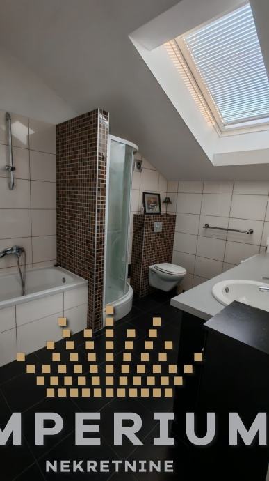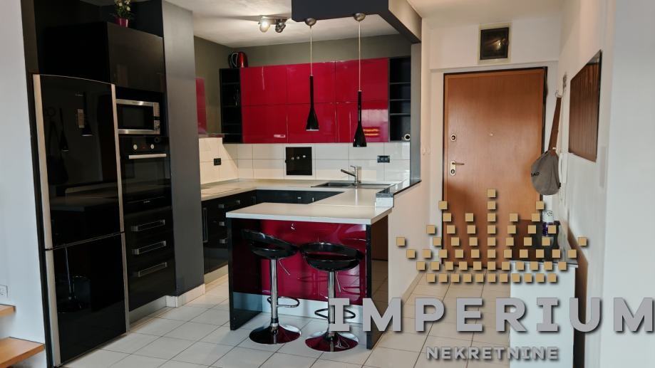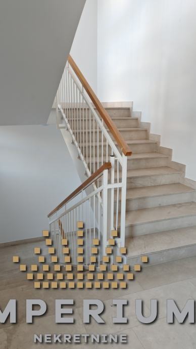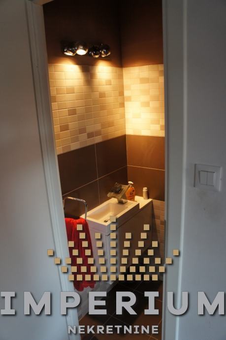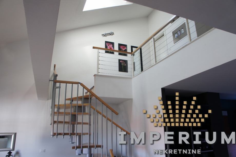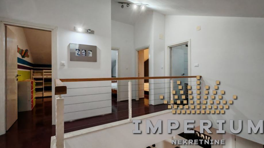 Na prvoj etaži nalazi se ulazni dio, dnevni boravak, kuhinja s blagavaononom, pomoćni wc i balkon, a na drugoj etaži nalaze se tri spavaće sobe i kupaonica.