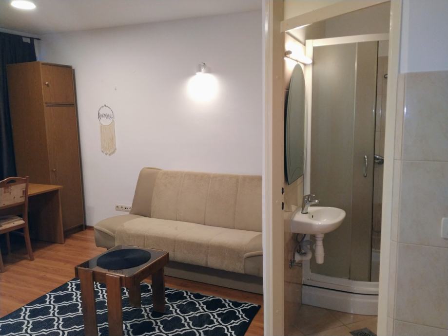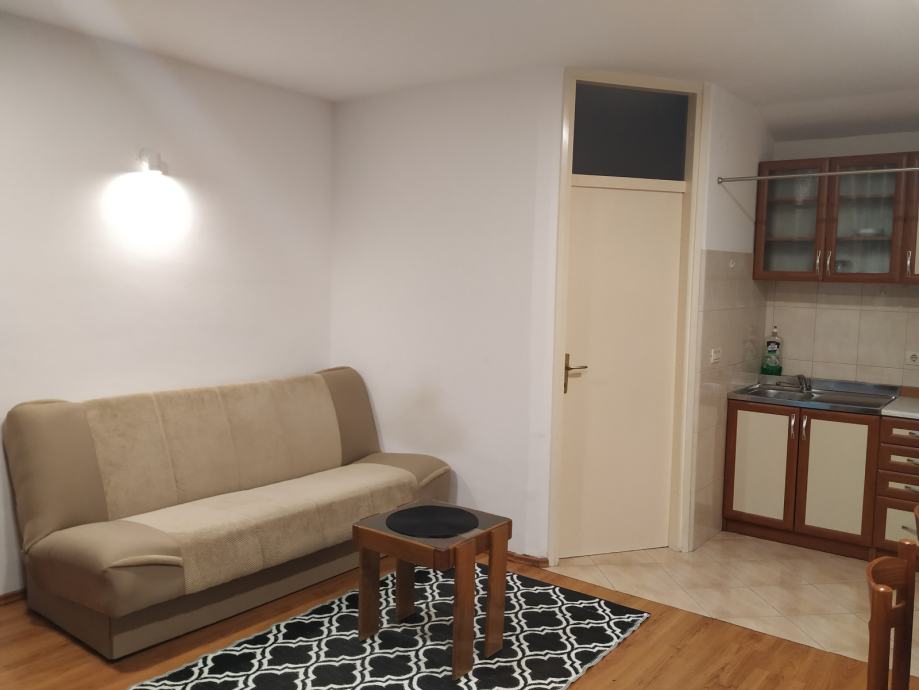 Iznajmljuje se garsonijera pogodna za stanovanje ili kao poslovni prostor (ured, salon i sl.).