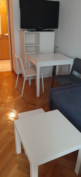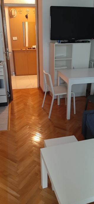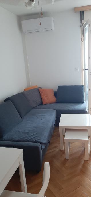 Iznajmljujem garsonjeru potpuno namještenu (perilica, stednjak, hladnjak, mikrovalna, TV), klimatiziranu, od 01. rujna 2024. do 30. lipnja 2025. godine. Može i na kraći rok uz prethodni dogovor (minimalno 3 mjeseca i veća cijena najma). Ima odvojeni prostor za spavanje i zatvorena terasu. U blizini, ispred zgrade parkiralište, besplatno, javni parking. Najam ide uz ugovor tako da se može prijaviti kod nadležnih institucija do nadnevka koji je naveden u ugovoru. režije se plaćaju extra uz dogovor (dio najmoprimac, dio najmodavac). Povučena instalacija za A1 internet. Obvezan polog, jedna mjesečna stanarina. Na upit može i video clip.