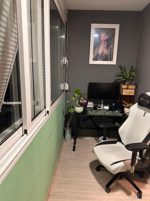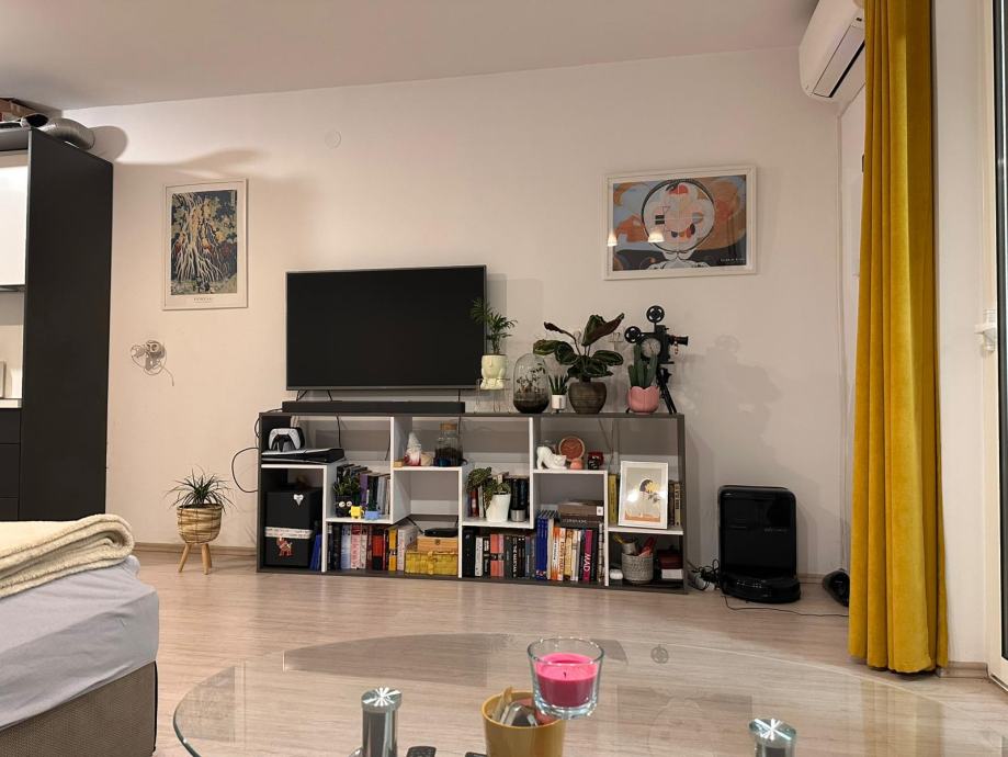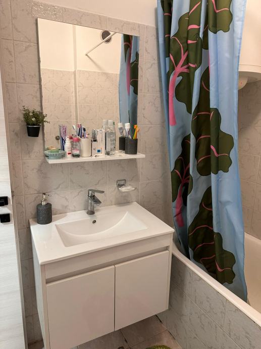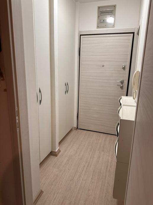 Sastoji se od hodnika s ugrađenim ormarima, kupaonice, novom kuhinjom s dnevnim boravkom te zatvorena lođa.Namještaj ulazi u cjenu.Stan je svjetao,osuncan te se nalazi u mirnom okruzenju.
