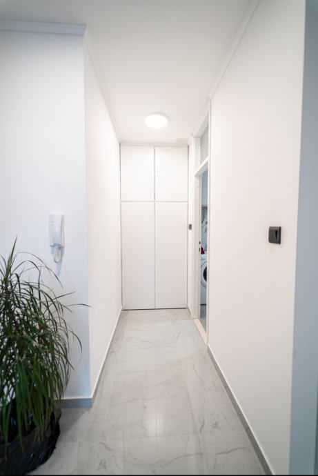 Stan je orijentiran na sjever. Sastoji se od ulaznog prostora, kuhinje, dnevnog boravka s blagovaonicom, spavaće sobe, kupaonice i terase. Stan je u potpunosti renoviran ove godine uključujući i namještaj. Pripada mu i šupa 2m2.