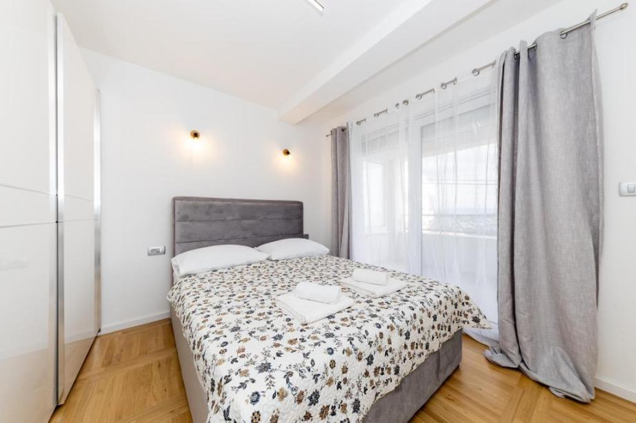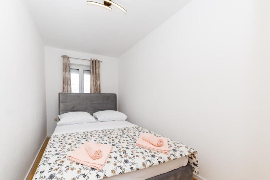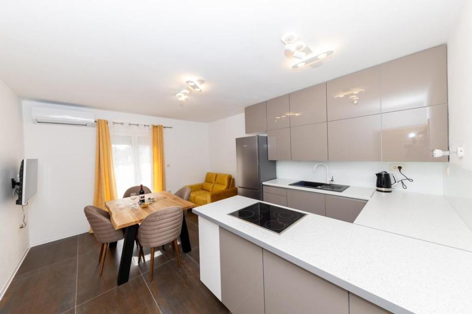 Potpuno je namješten, sastoji se od kuhinje i blagovaonskog dijela, dnevnog boravka, 2 spavaće sobe, kupaonice i 2 balkona.
