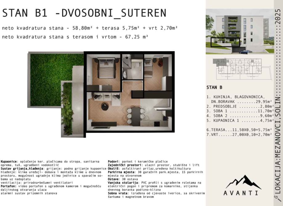 30 garažnih mjesta | 15 vanjskih parkirnih mjesta | 30 ostava.