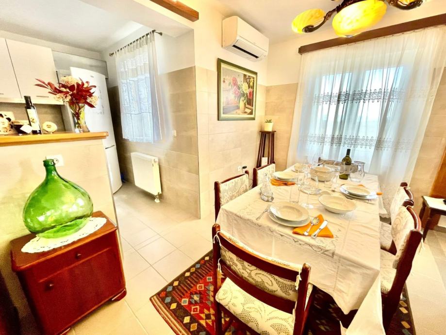 Stan ima 90 m2, nalazi se na 1. katu obiteljske kuće, a sastoji se od predprostora, hodnika, tri spavaće sobe, kuhinje i blagovaone, dnevnog boravka, 2 kupaonice, balkona i terase (30 m2).