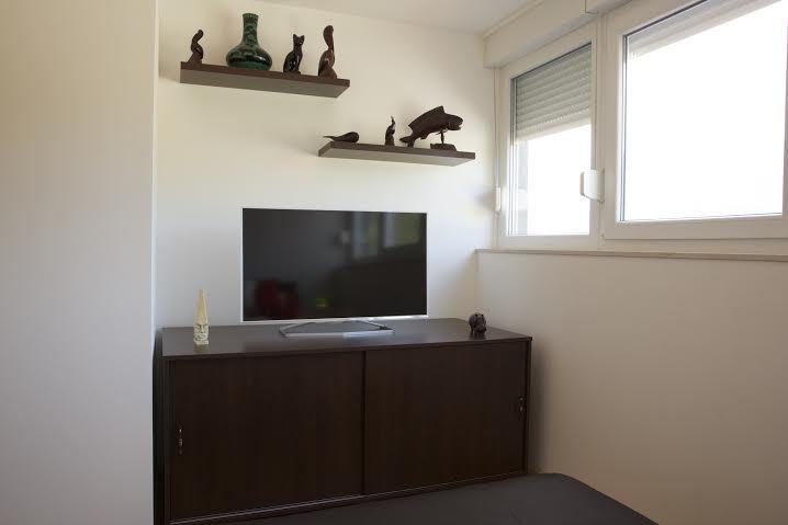 Sastoji se od dnevnog boravka, kuhinje s blagavaonicom, dvije spavaće sobe i kupaonice. Pripadak stanu vanjsko parkirno mjesto i ostava u suterenu površine 9,66 m2. Stan je opremljen vrhunskim namještajem po mjeri te modernim uređajima te vrlo malo korišten. Prodaje se potpuno opremljen i namješten.