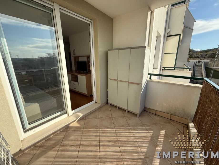 Stan se nalazi na 1. katu stambene zgrade, ima 40 m2, a sastoji se od ulaznog dijela, dnevnog boravka, kuhinje s blagovaonom, spavaće sobe, kupaonice i balkona.