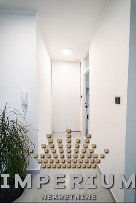 Stan se sastoji od ulaznog dijela, dnevnog boravka, kuhinje s blagavaonom, spavaće sobe, kupaonice i terase.
