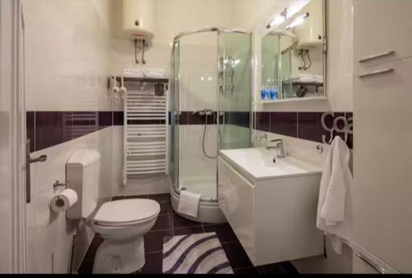 Kuhinja je potpuno opremljena štednjakom, pećnicom, hladnjakom i zamrzivačem, tosterom, čajnikom, tanjurima, čašama, priborom za jelo i svim ostalim potrebnim priborom za kuhanje i kuhinjskim priborom. Jedna kupaonica je potpuna obiteljska kupaonica s tušem i WC-om, a druga je WC s umivaonikom. Dostupna je perilica za rublje.