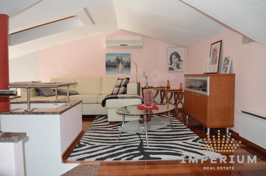 Stan je dvoetažan, sastoji se od kuhinje s dnevnim dijelom na prvoj etaži, dnevni boravak na galeriji, dvije spavaće sobe, dvije kupanice i balkon.