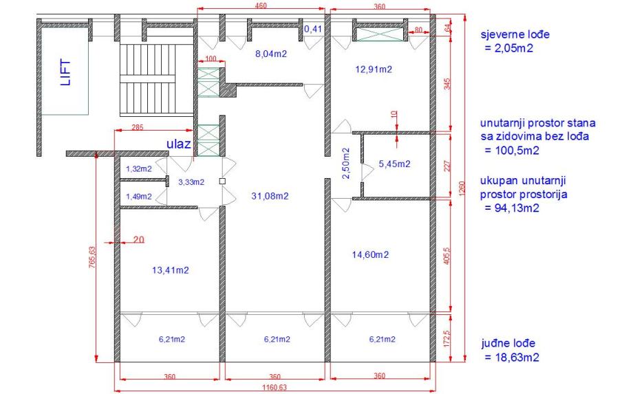 Stan ima 95,5m2 unutarnjeg prostora te 20m2 lođa.