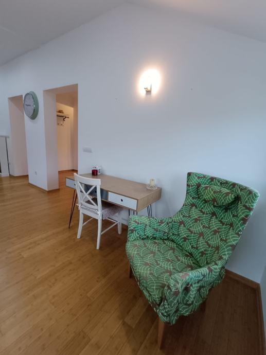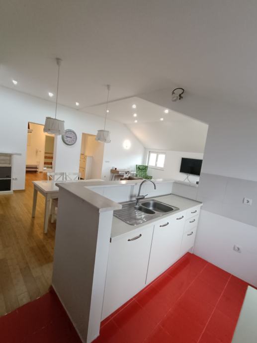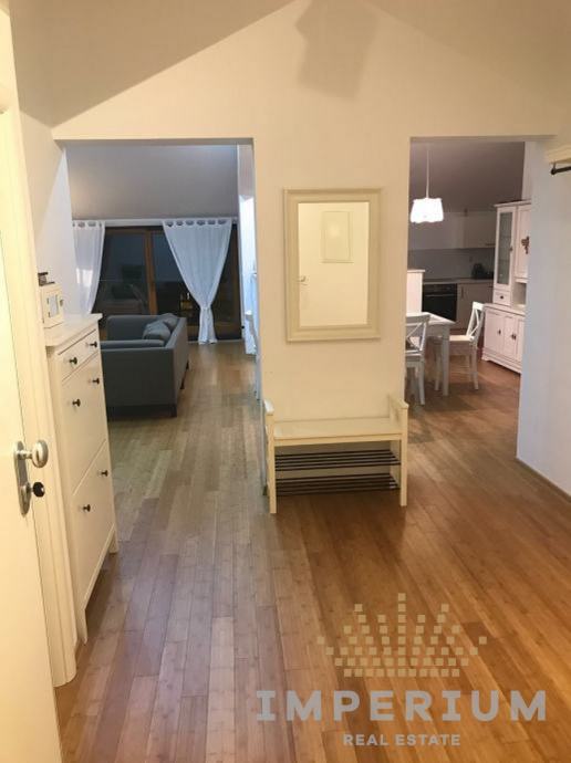 Sastoji se od velikog dnevnog boravka, kuhinje s blagavaonom, dvije spavaće sobe, dvije kupaone, walk-in ormar, balkon s pogledom na more.