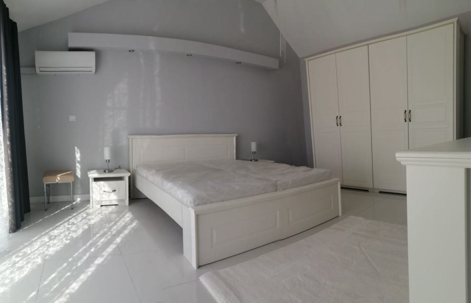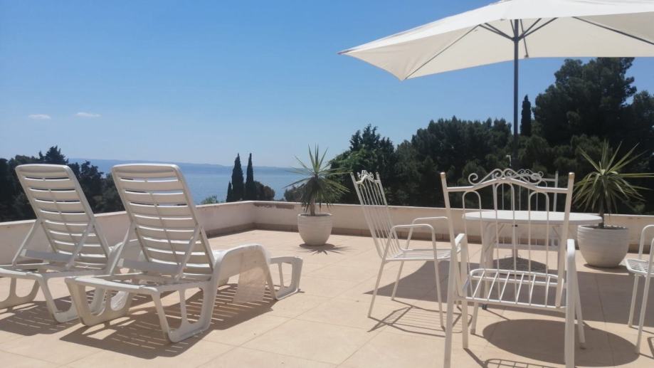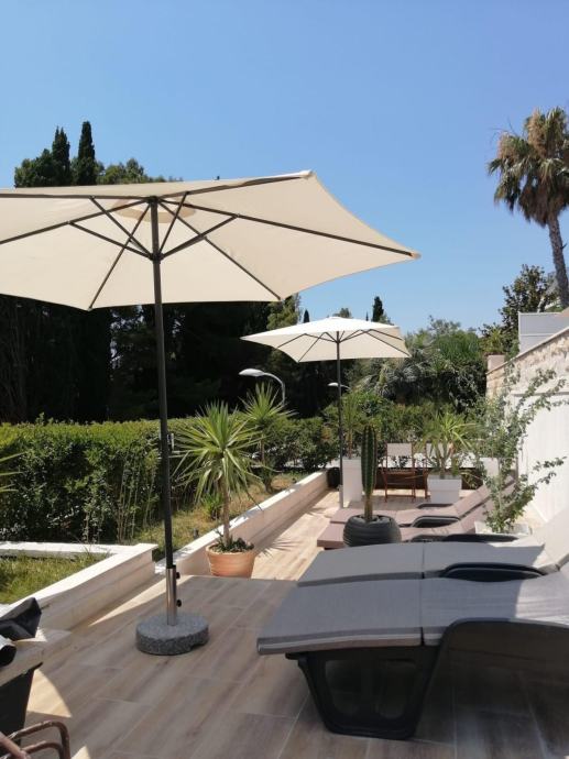 We mediate the rental of a luxurious two-story apartment in Split in an exclusive location, Meje district. The apartment is located on the first and second floor of a private house. On the first floor there is a living room, a kitchen with a dining room, a bedroom, a bathroom and a terrace. An internal staircase leads to the second spacious bedroom with a large terrace (40m2) where future tenants will enjoy a unique open view of the sea. In the yard of the house there is a swimming pool for shared use and a barbecue and a veranda as a space for socializing and relaxing. The apartment also has a garage and an outdoor parking space. The beach is just a few steps from the apartment, and nearby is the jewel of the city of Split - Marjan Forest Park as a place for sports and recreation. The apartment is rented long-term.