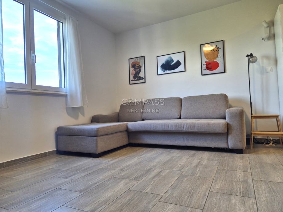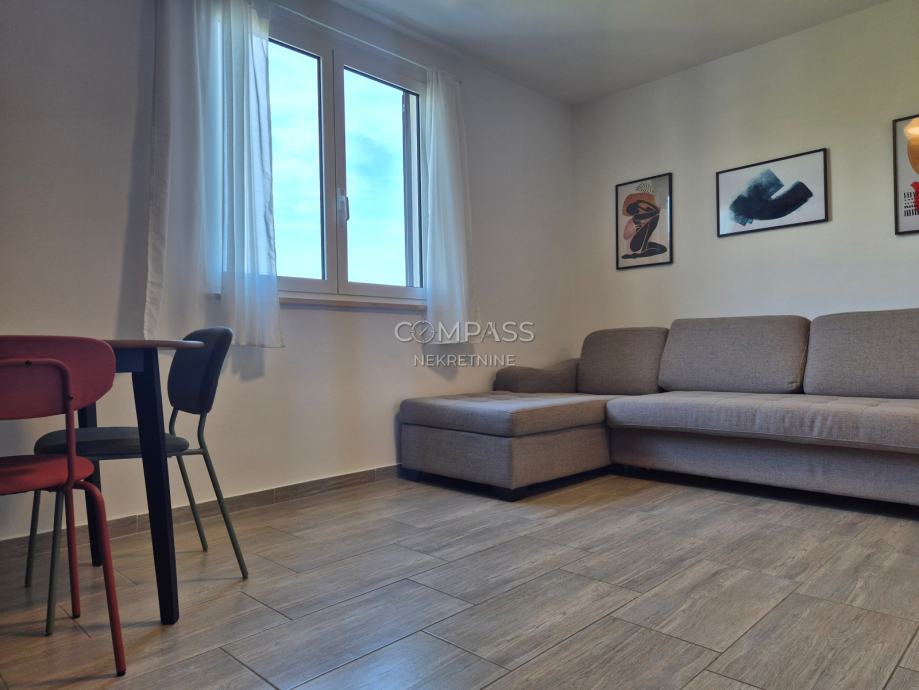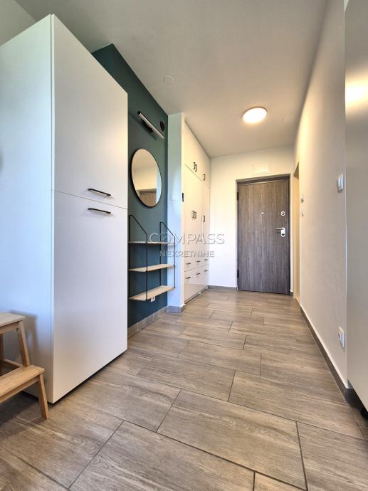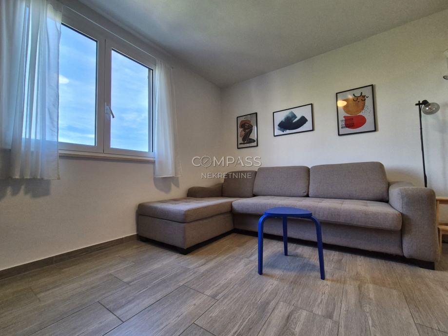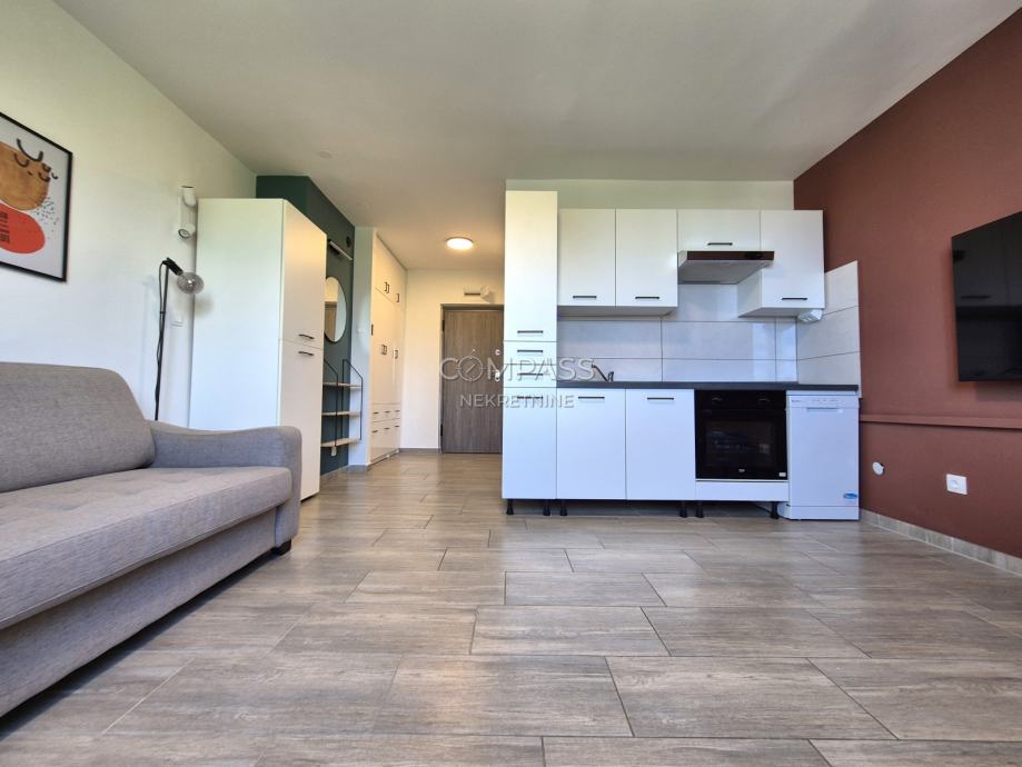 Posredujemo pri najmu prekrasnog studio apartmana u stambenoj zgradi na Mertojaku. Sastoji se od hodnika, kupaonice te dnevnog dijela s potpuno opremljenom kuhinjom, blagovaonskim stolom i kutnom garniturom koja se razvlači u krevet dimenzija 140 × 200 cm.