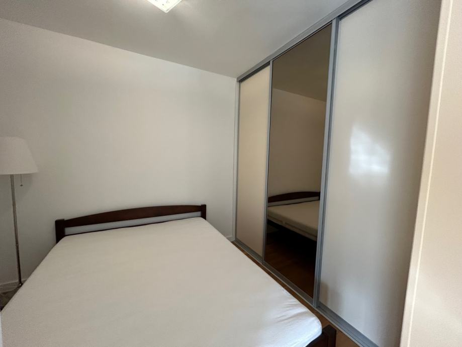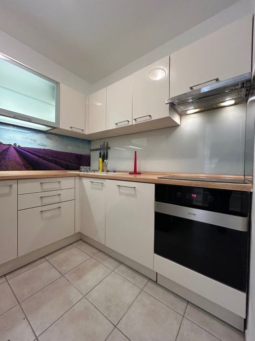 Stan je potpuno namješten, sjeveroistočne orijentacije, osunčan, topao, klimatiziran i opremljen sa dvije glamox ploče za grijanje.