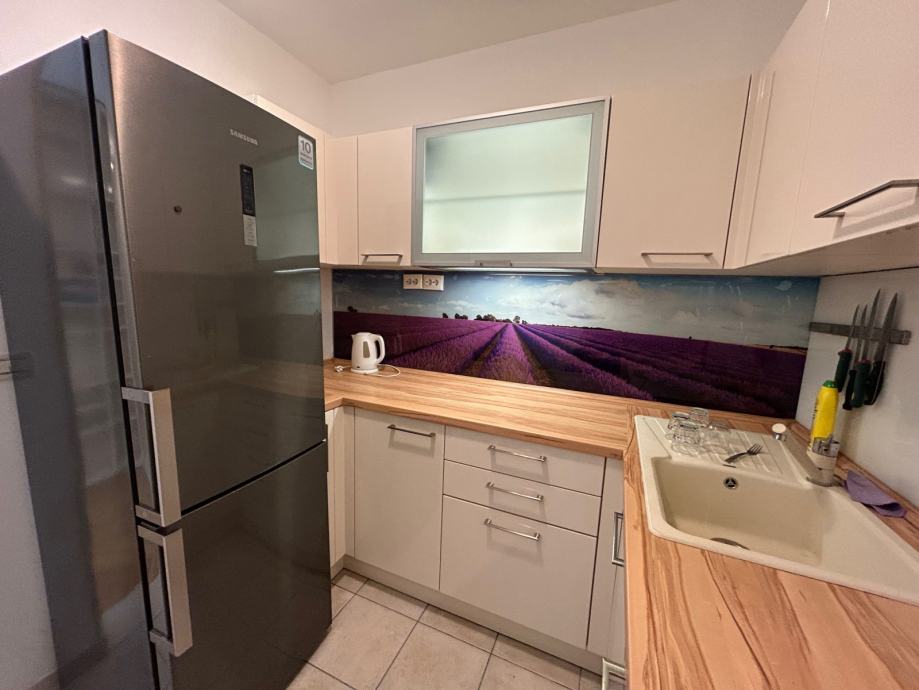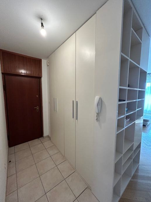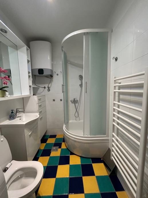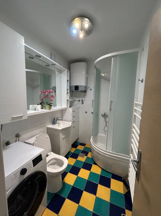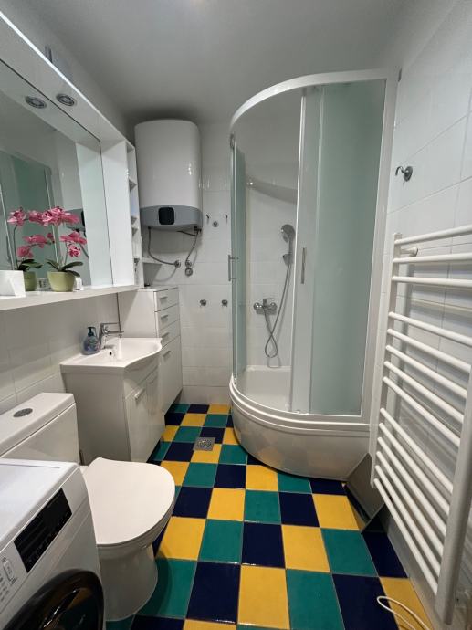 U kupaonici su u potpunosti nove sanitarije (školjka, tuš kabina, bojler, umivaonik s ormarićem te mašina za robu) te je stan svježe obojan.