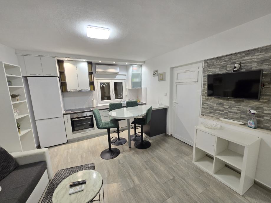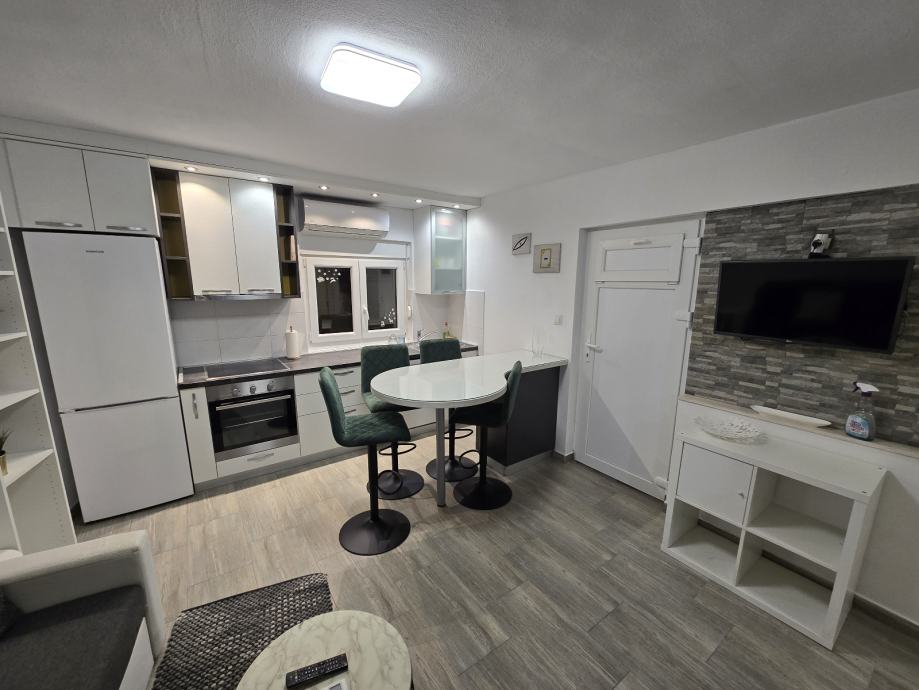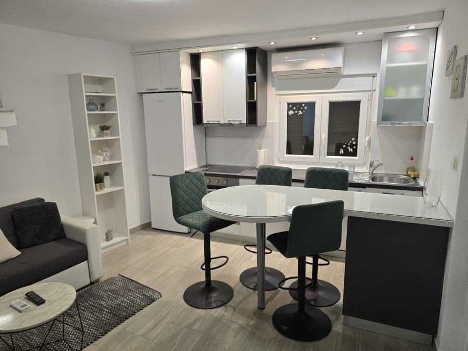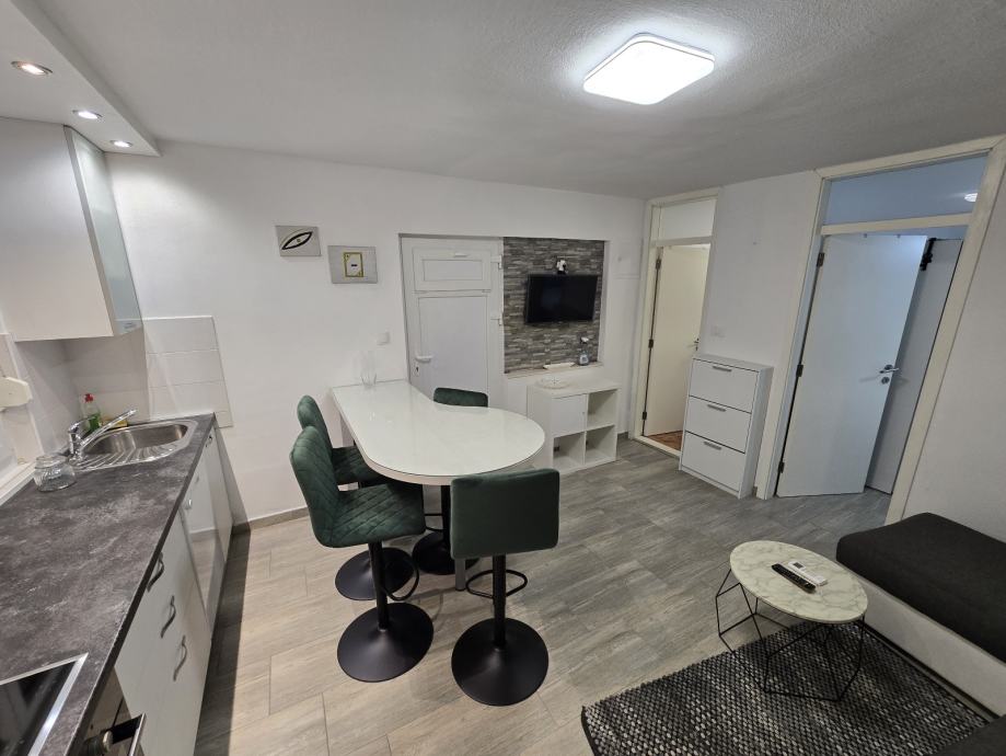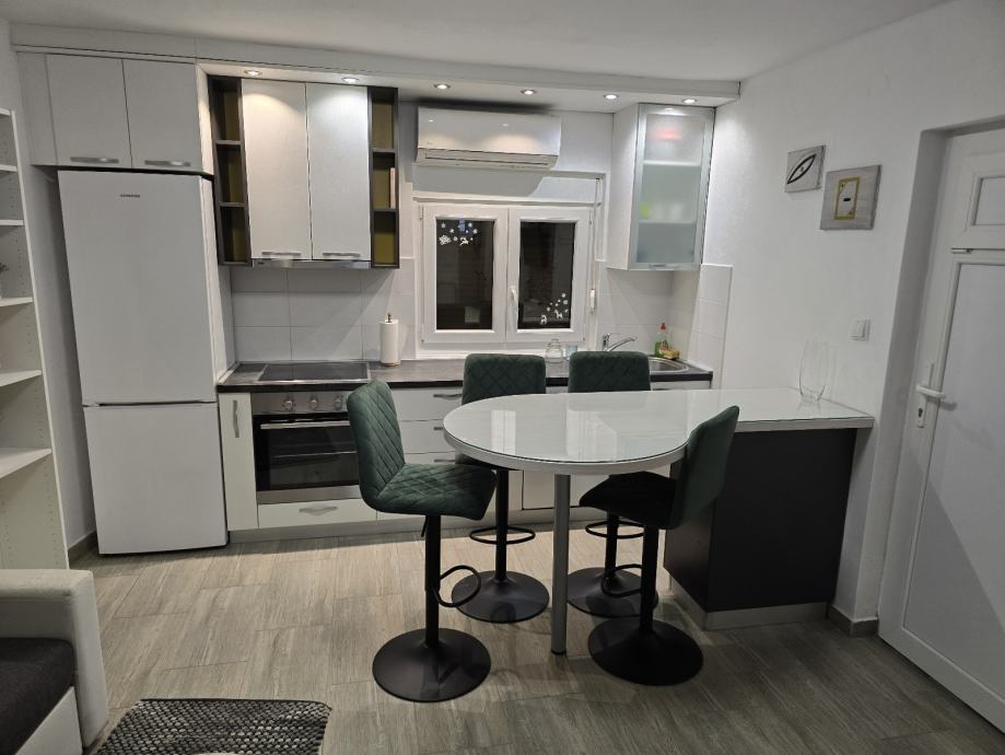 Iznajmljujemo novouređen stan u blizini kampusa, u prizemlju obiteljske kuće, sa svim sadržajima (TV, perilica posuđa, perilica/sušilica rublja, mikrovalna pećica, klima, kompletna kuhinja).
