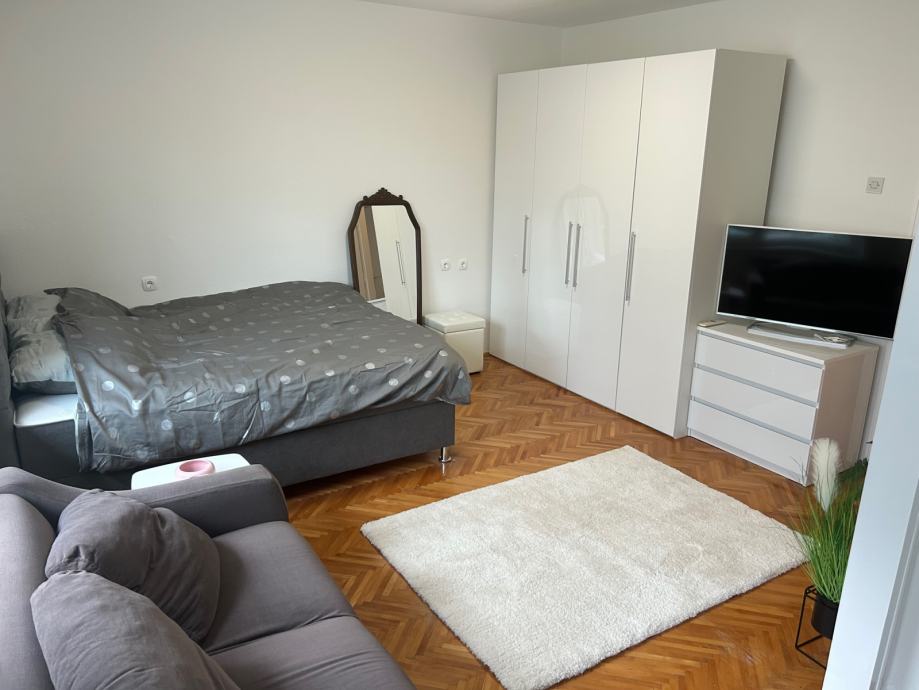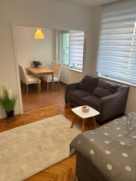 Garsonjera (soba odvojena od blagavaonice), 35m2 u centru grada (iza Pravnog fakulteta), renovirana s novim, nekorištenim namještajem, daje se u dugoročni najam (cijela godina, apartmanizacija isključena). Parking mjesto u dvorištu zgrade (za stanare). Zgrada od 2023.g. ima novu fasadau i ugrađeni lift. Mjesečni najam 500eur. Trošak izrade i ovjere ugovora snosi najmodavac.