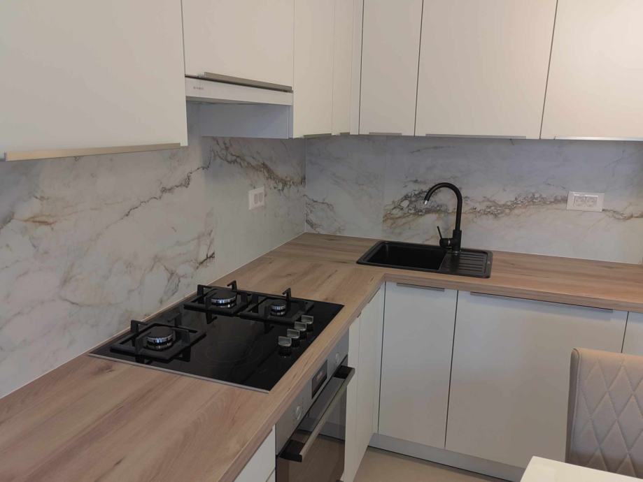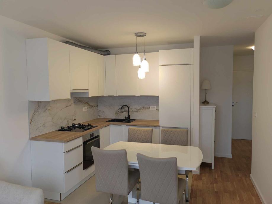 Prekrasan stan u novogradnji na Mejašima. Sastoji se od dnevnog dijela s kuhinjom, blagavaonicom i dnevnog boravka s balkonom, te dvije spavaće sobe i kupaonicom.
