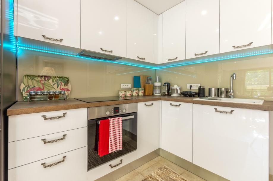 • Sastoji se od: Hodnika, kupaonice, potpuno opremljene kuhinje, dnevnog boravka i spavaće sobe.