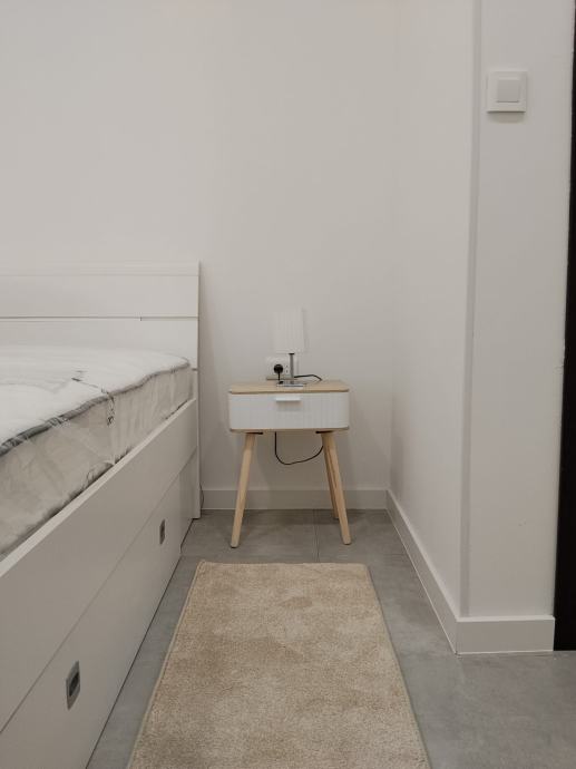 Iznajmljujemo novo renovirani, jednosobni stan na duži period. Useljivo odmah. Prilaz je sa brze ceste D8, Put Sirobuje, a pogled je na Stobreč. Stan je smješten u modernoj privatnoj obiteljskoj kući, u prizemlju. Sastoji se od jedne spavaće sobe sa bračnim krevetom i ormarom, blagavaonicom s dnevnim boravkom, kuhinjom, wc-om, ostavom i ulaznim prostorom. Ima ploču za kuhanje, pećnicu, hladnjak, perilicu za suđe i perilicu za robu. Grijanje (i hlađenje) je na klimu. Pogodan je za samce i parove te obitelj s malim djetetom. Autobusna stanica je 3 min hoda od stana. Udaljenost od grada je 10 min vožnje autom, te 5 min od Super Konzuma i City Centra One. Stanu pripada 1 parkirng mjesto. U neposrednoj blizini se nalazi trgovina, igralište, škola, doktorica, pedijatar i zubarica. Mirno susjedstvo. Javite se (agencije isključene) na broj: 091/1500-646