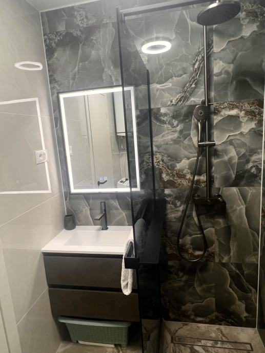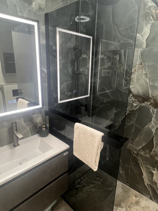 • kupaonicu s tuš kabinom, ogledalom s grijanjem i LED osvjetljenjem, sušilo za kosu