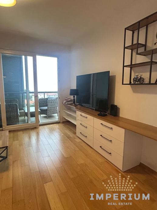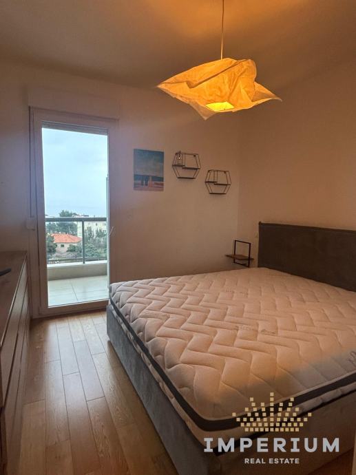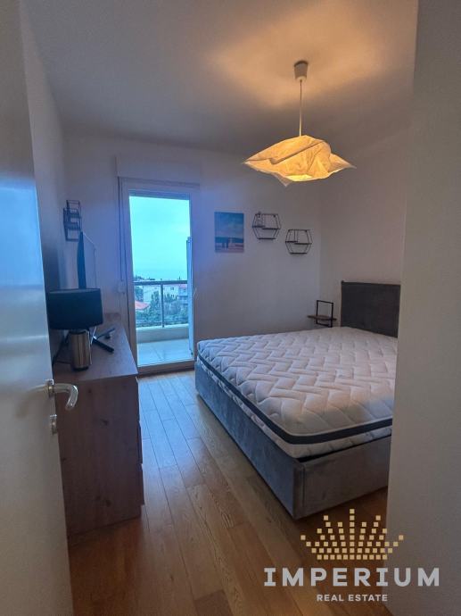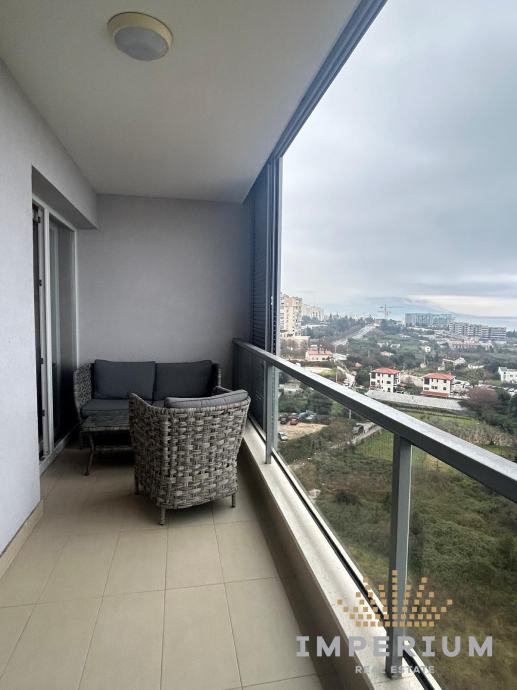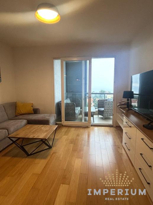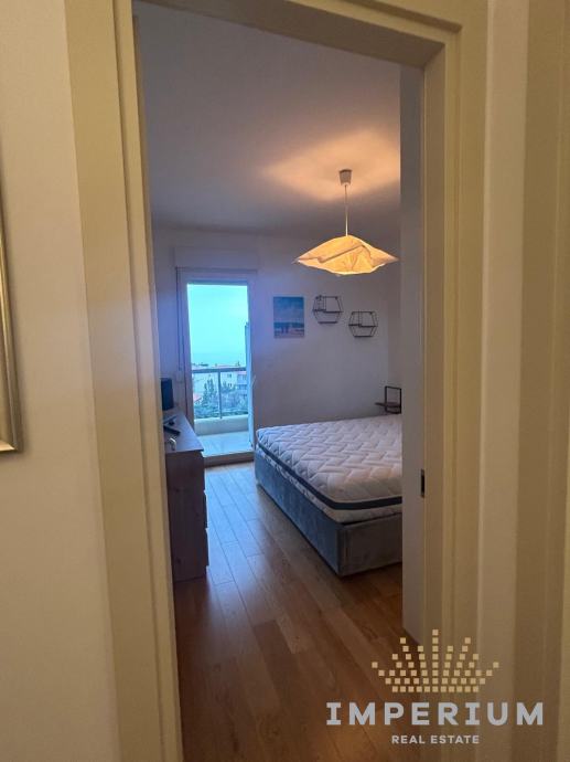 Stan ima 54 m2, nalazi se na 8. katu stambene zgrade, a sastoji se od kuhinje s blagovaonom i dnevnim dijelom, spavaće sobe kupaonice i lođe s prekrasnim pogledom na more.