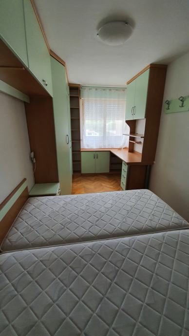 Stan se nalazi uz veliko javno parkiralište, 70 metara od dječjeg vrtića, 150 metara od OTP banke, 220 metara od ambulante, 300 metara od ljekarne, 200 metara od crkve, 360 metara od trgovačkog centra Kufland... Potpuno namještena kuhinja, blagovaona i bračna spavaća soba s velikim ormarima. Jedna soba je prazna i pogodna za veliku dječju sobu ili dnevni boravak, ovisno o tome jesu li najmoprimci obitelj s djecom, par ili samac i njihovim željama i potrebama.