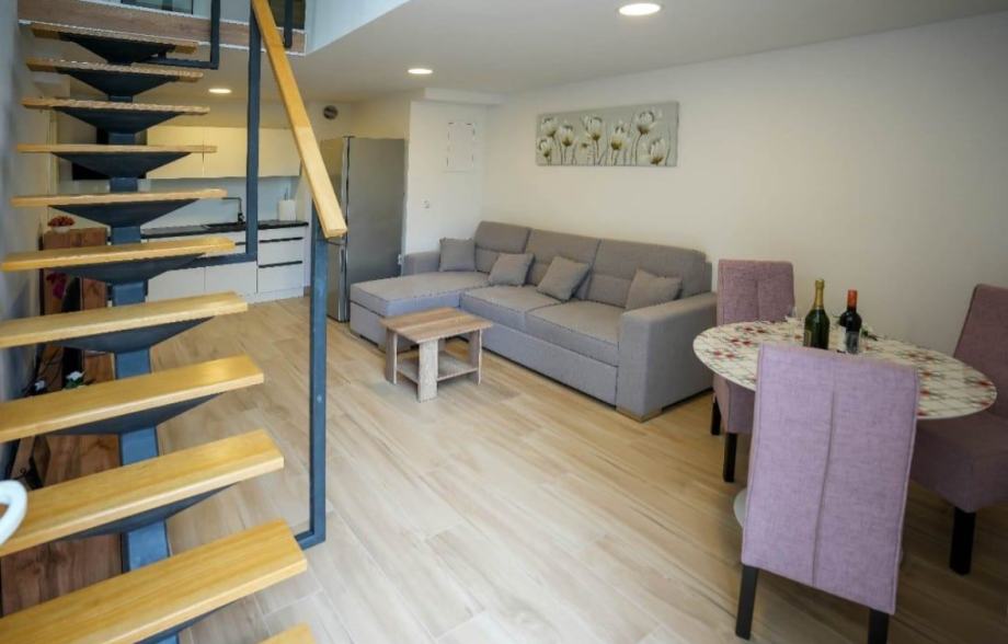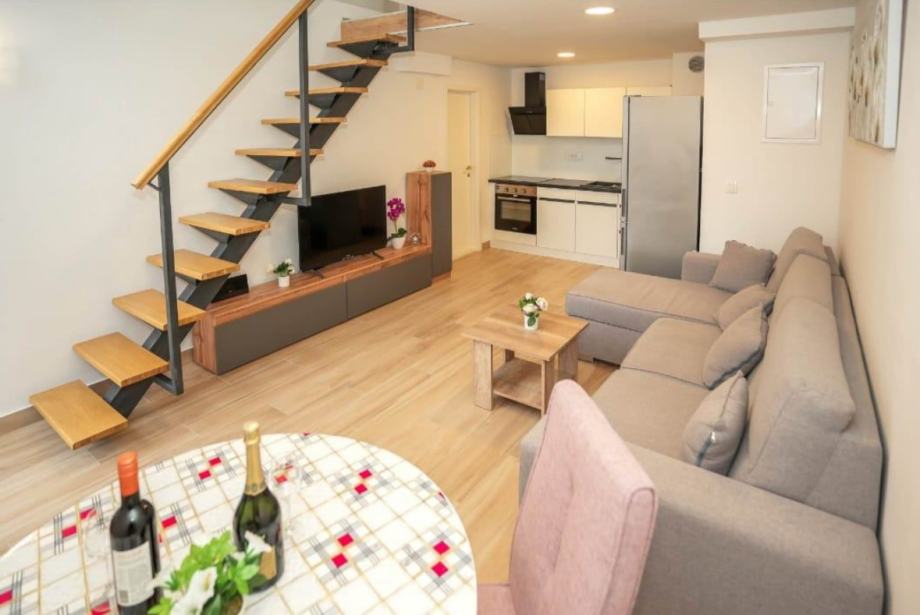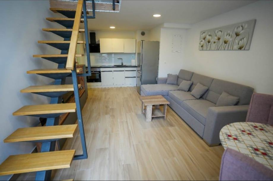 Iznajmljuje se dvoetazan stan u stambenoj zgradi,položen na prizemlju.