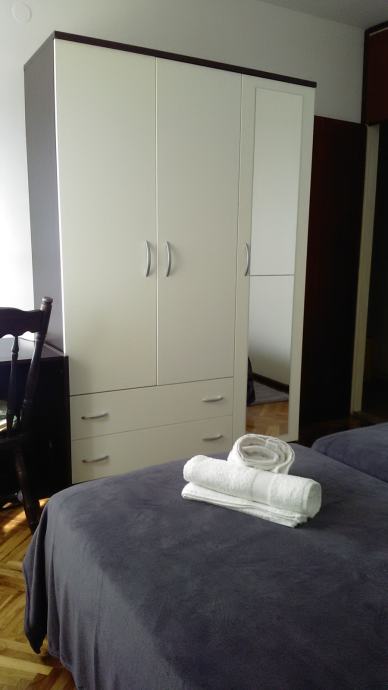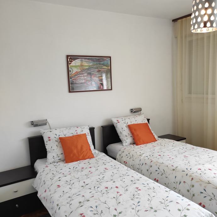 Iznajmljujemo na dulje razdoblje l uređen, dvosobni, sunčani stan na jugoistoku na Splitu 3 ( po mogućnosti studentima), neposredna blizina Medicinskog i Filozofskog fakulteta i sveučilišnog Kampusa, sa prekrasnim pogledom na more. Stan je kompletno namješten i ima sve potrebne uređaje (perilicu rublja, perilicu suđa, kabelska TV sa Internetom i klima uređaj +radijator, jedna spavaća soba ima dva kreveta, dok druga spavaća soba ima bračni krevet.160x200 Kućni ljubimci nisu dozvoljeni. Cijena mjesečnog najma je 700 EUR, plus režijski troškovi.,polog je 700eura. Stan iznajmljuju vlasnici, te je navedena cijena bez agencijske provizije. Ukoliko ste zainteresirani, stan je moguće razgledati uz prethodni telefonski dogovor.(098-9357225)