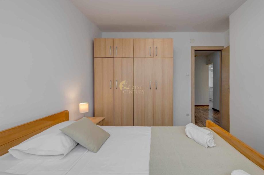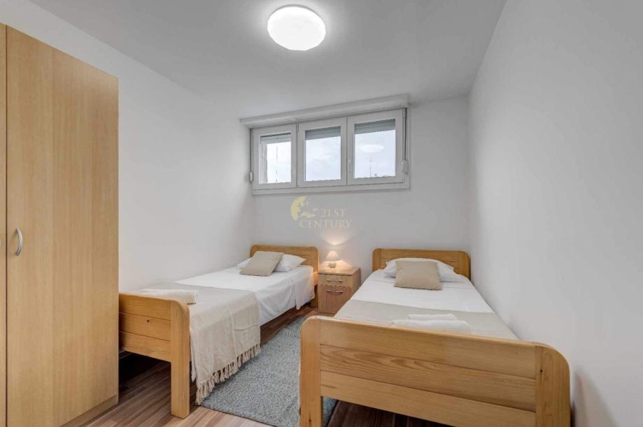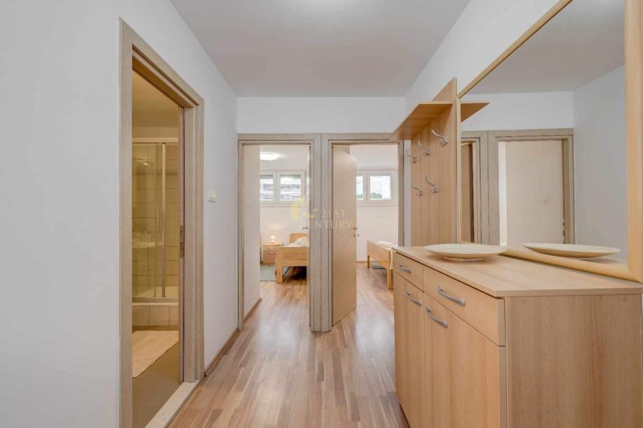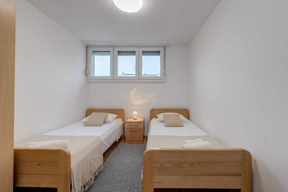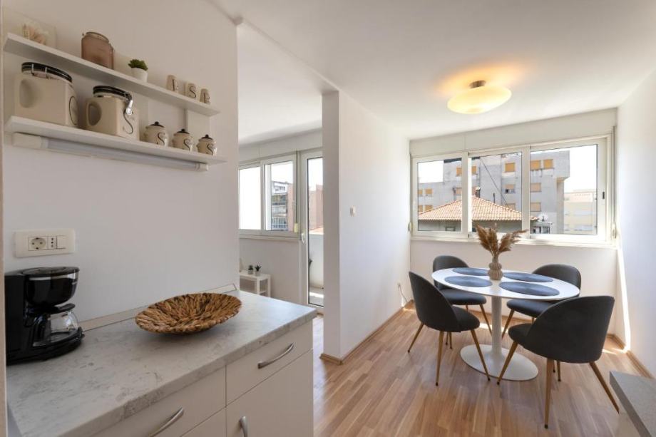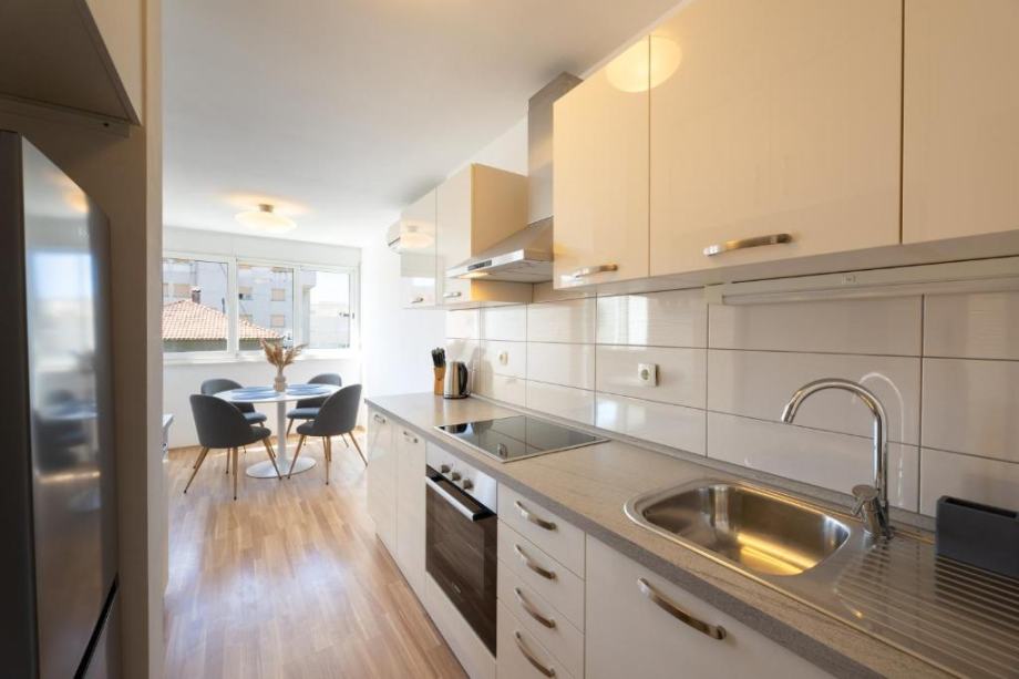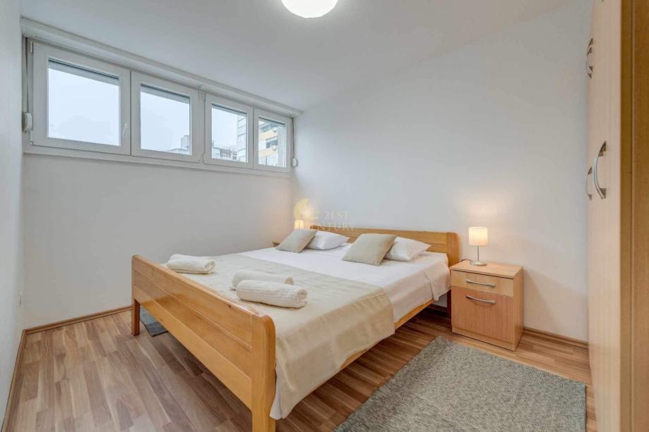 Sastoji se od jedna spavaće sobe s bračnim krevetom, druge spavaće sobe s dva odvojena kreveta, kuhinje s blagovaonicom. dnevnog boravka, kupaonice te balkona. Nalazi se na odličnoj lokaciji, 10min hoda od centra grada, kampusa te se nalazi u blizini svih potrebnih sadržaja.