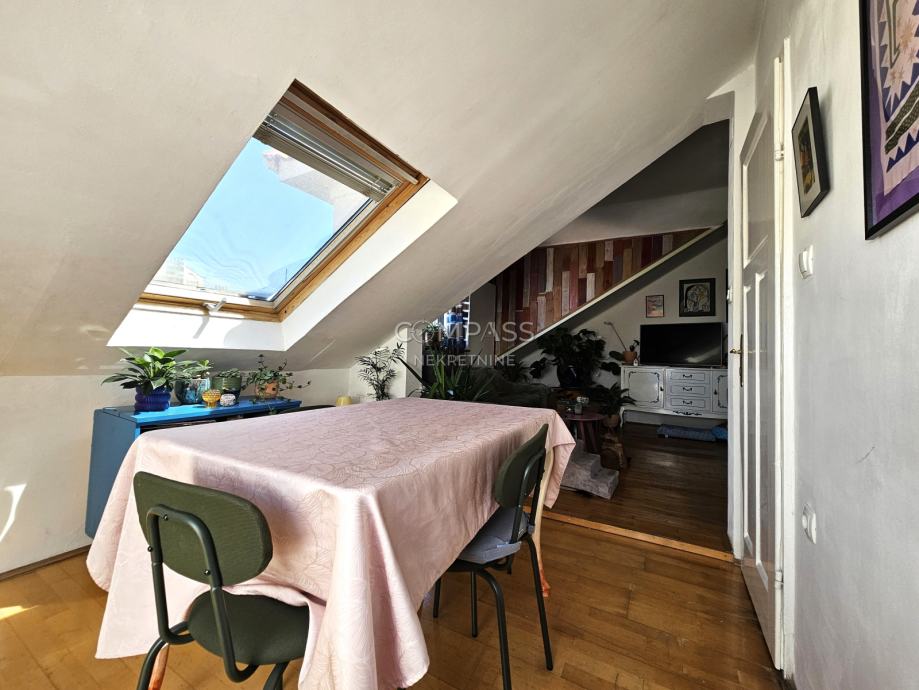 It is located in the attic of a well-maintained residential building from the 1920s, without an elevator, featuring a charming historic staircase. The apartment is categorized for tourist rental, making it an ideal investment opportunity.