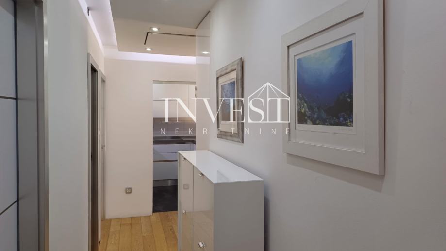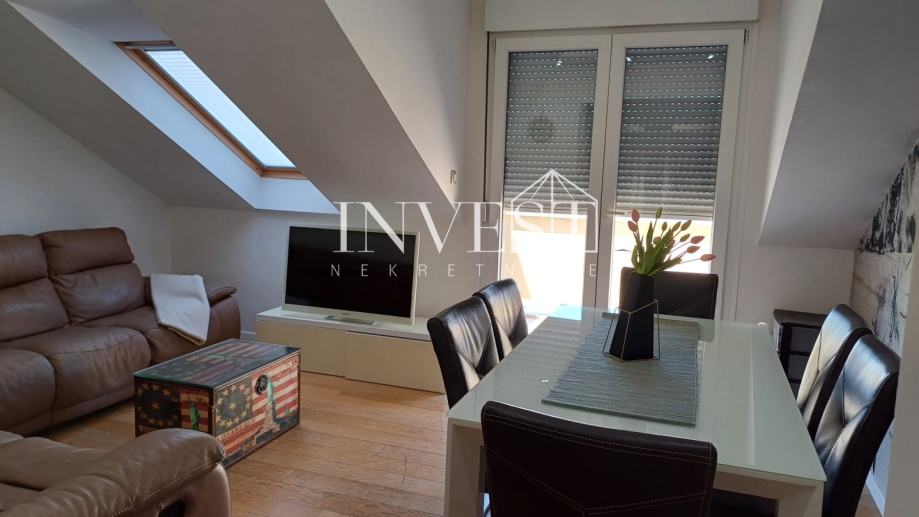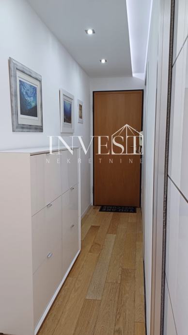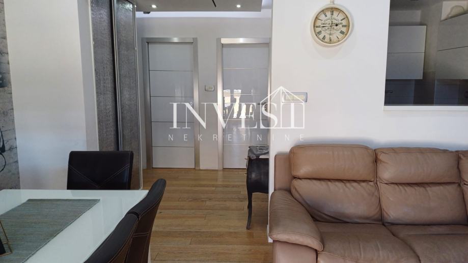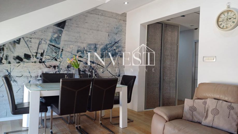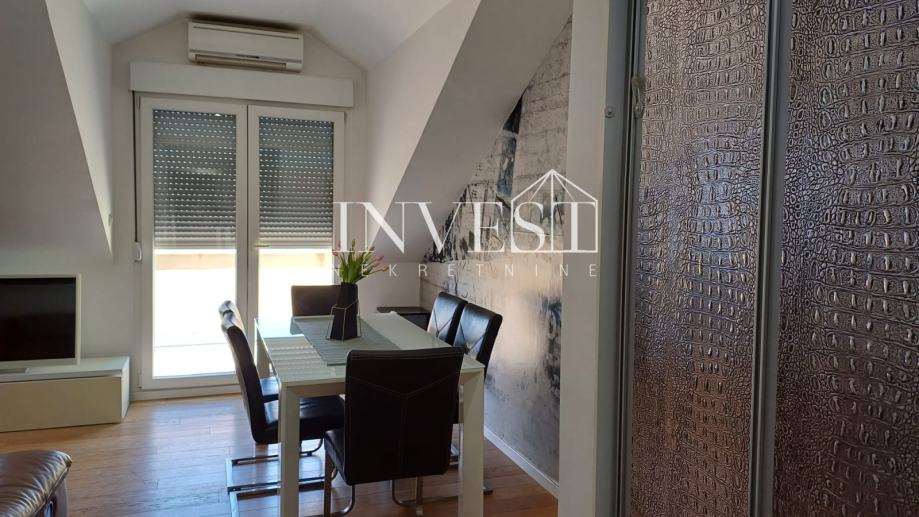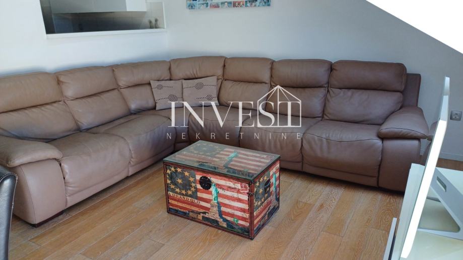 Kompletno opremljen uređajima, namještajem i tehnikom. Stanu pripada garažno parking mjesto uz mogućnost dodatnog najma još jednog.
