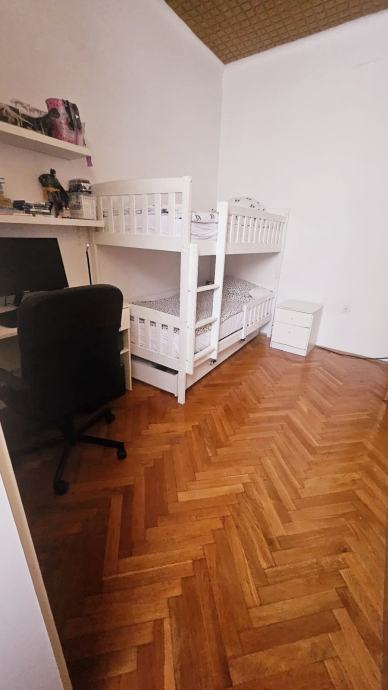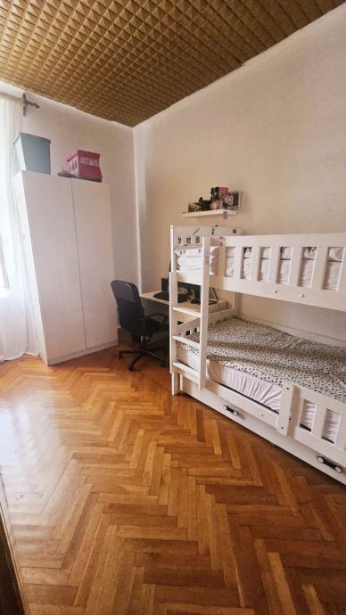 Stan nema terasu i balkon ali je prozračan, svijetao i visokih je stropova. Sastoji se od prostranog dnevnog boravka, manje izdvojene kuhinje, kupaonice s tuš kadom, velike roditeljske sobe te dvije manje dječje sobe.