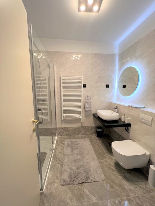 Stan se sastoji od dvije spavaće sobe, velikim dnevnim boravakom,kuhinja +blagavaona, dva kupatila, oba sa tuš kabinom.