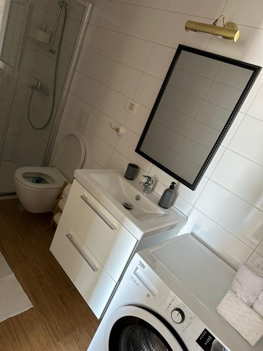 Parking mjesto je dostupno ispred stana. Stan je u potpunosti namješten i opremljen kućanskim aparatima i klima uređajem.
