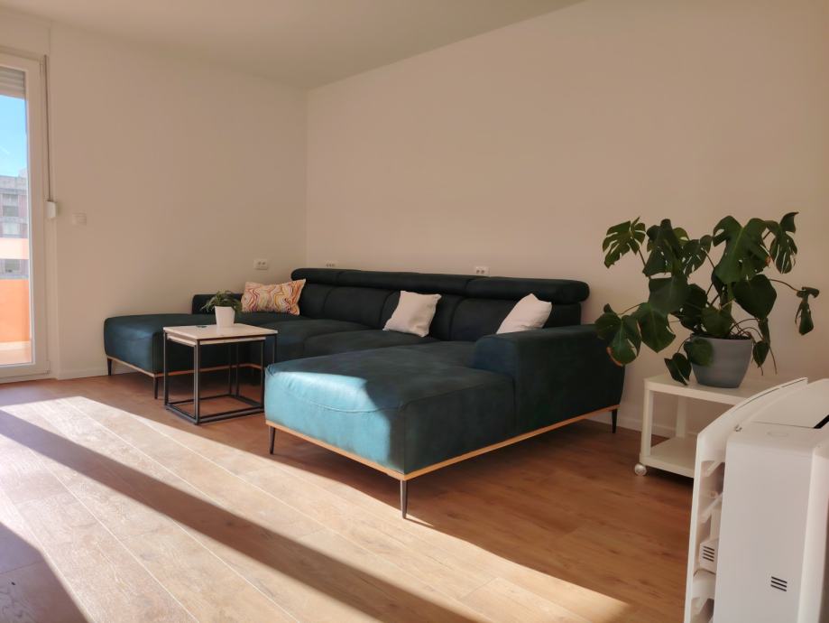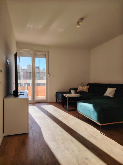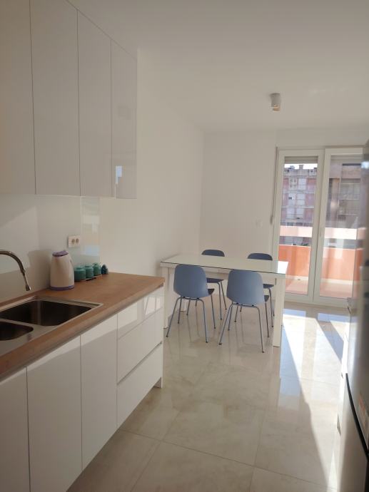 Iznajmljuje se prostrani, potpuno renoviran i moderno uređen 2-sobni stan (91 m²) u Splitu 3, u ulici Marina Getaldića (½ kat u zgradi s portafonom, 5 katova).