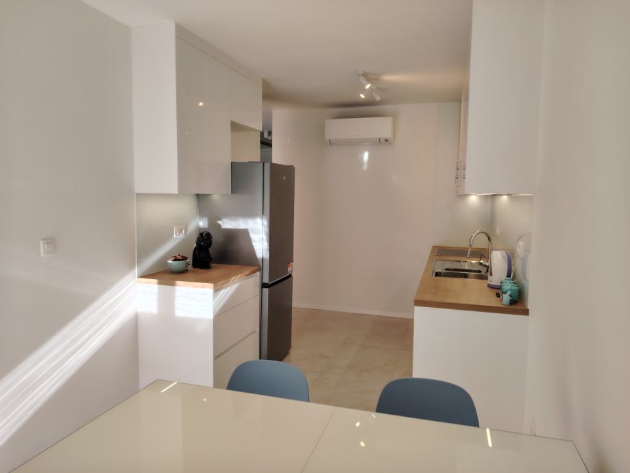 It is fully furnished and equipped with all appliances: washing machine, dishwasher, oven, microwave, large fridge with freezer, coffee machine, TV, and Daikin air conditioners in every room.