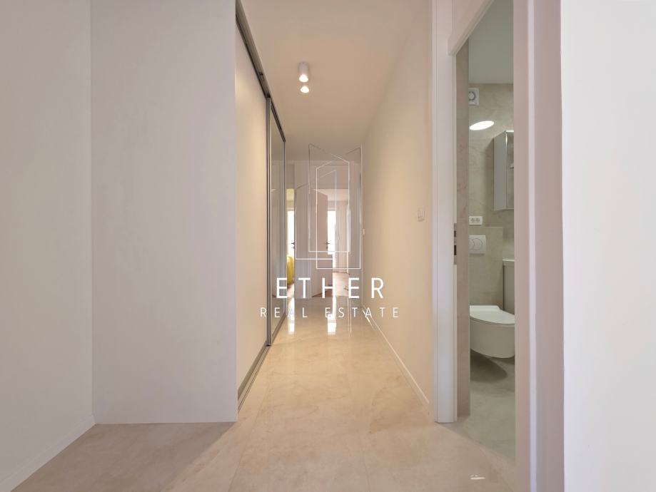 Stan se sastoji od kuhinje s blagovaonicom, koja ima izlaz na balkon koji dijeli s prostranim dnevnim boravkom. Kroz stan se proteže funkcionalan hodnik opremljen velikim ormarom, a na raspolaganju su i dvije kupaonice.