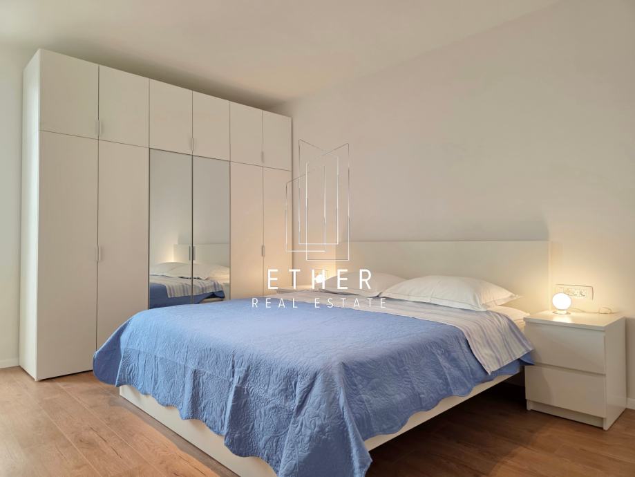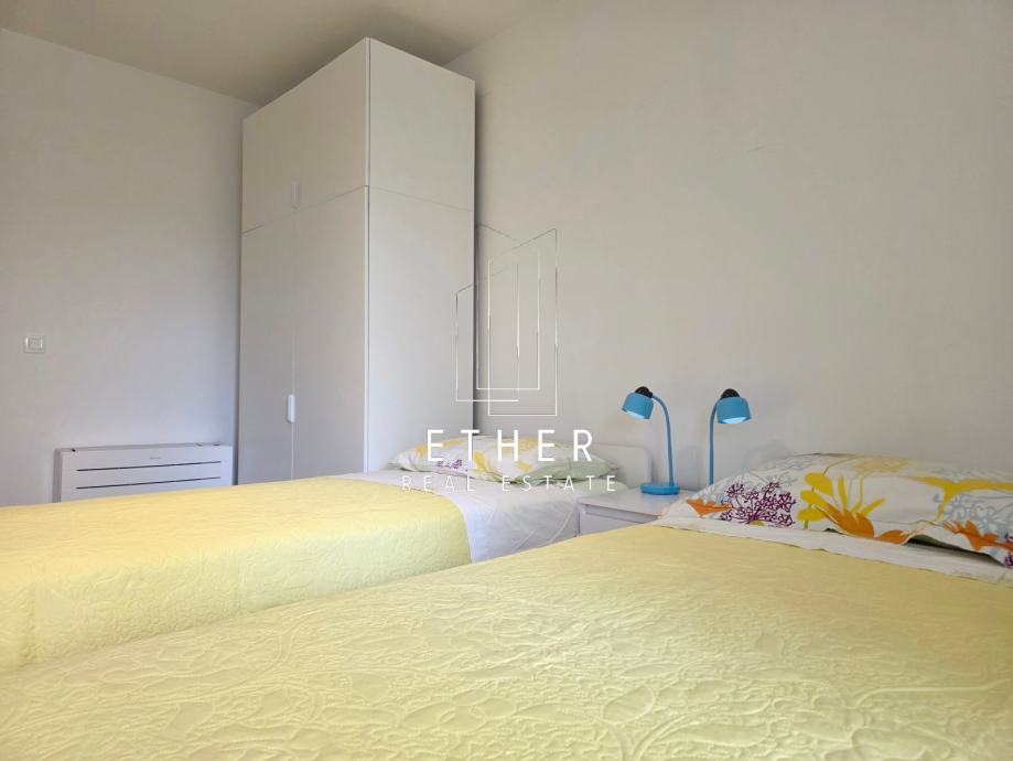 Two comfortable bedrooms, both with access to common loggia, ideal for peace and relaxation. Each room in the apartment is individually air-conditioned — a total of four air conditioners.