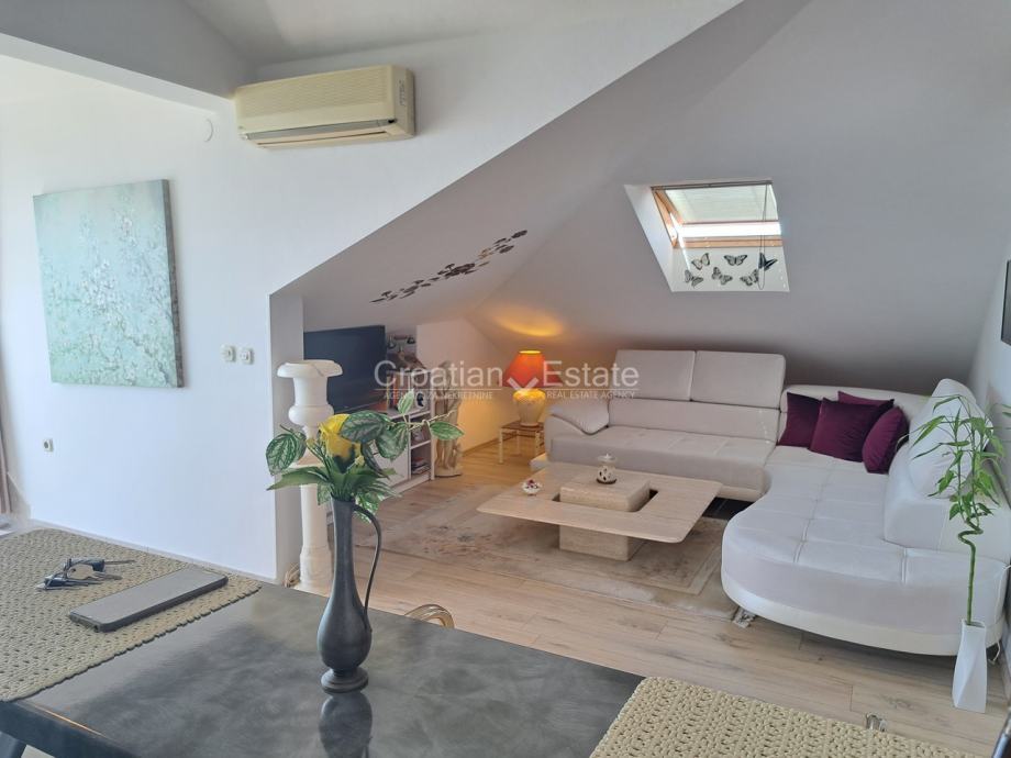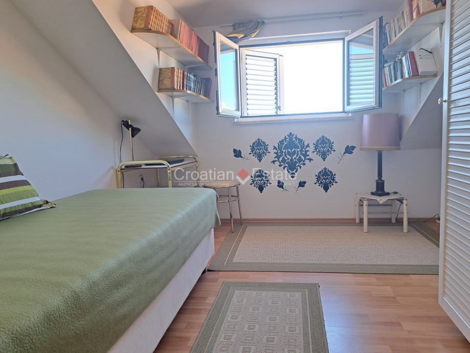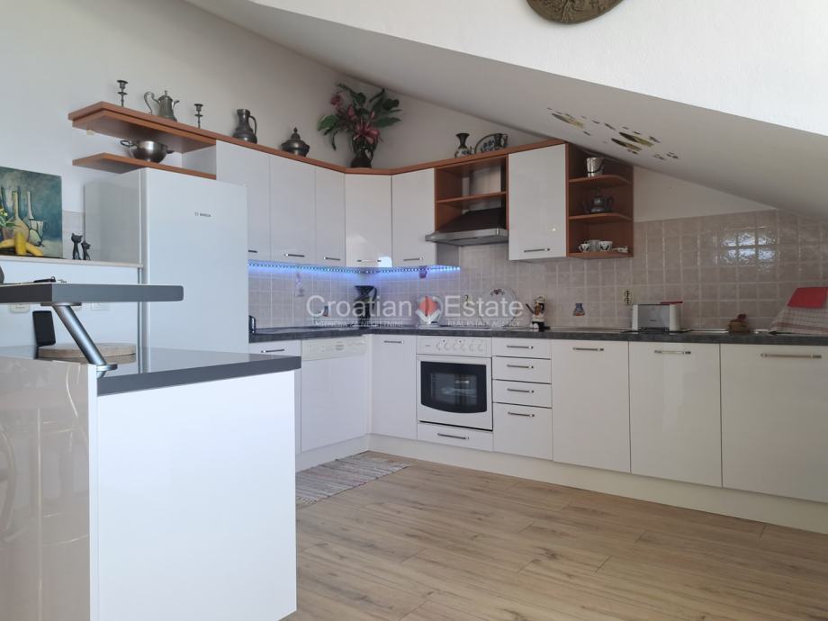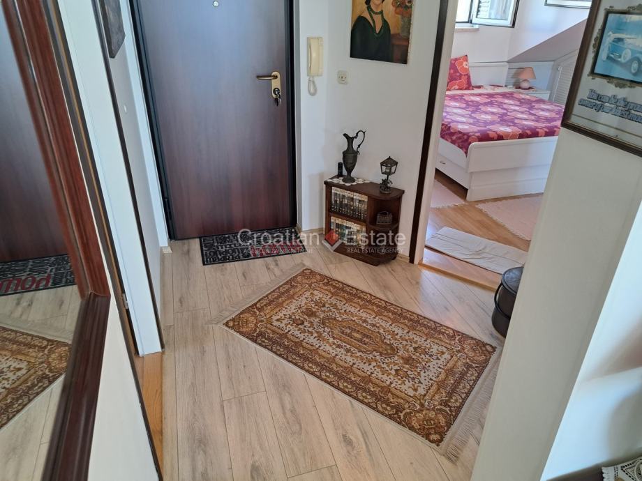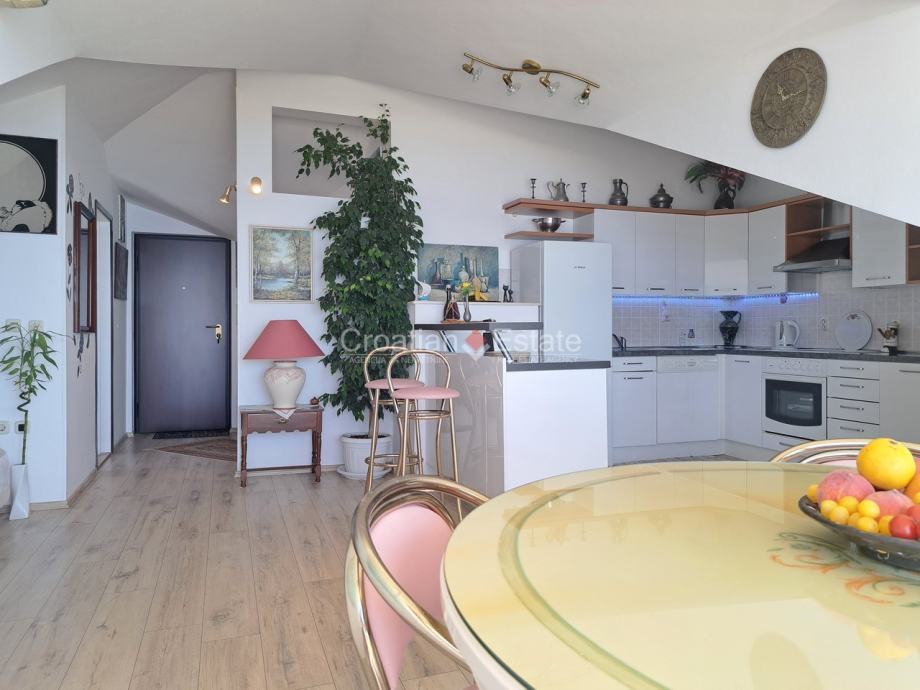 Na atraktivnoj lokaciji splitskog Žnjana, prvi red uz more, prodajemo lijepi dvosobni stan smješten na trećem katu manje stambene zgrade bez lifta. Stambena površina stana iznosi 91,20 m2 m2, a sastoji se od hodnika, kuhinje s blagovaonicom i dnevnim boravkom, dvije spavaće sobe, kupatila i lođe na jugu sa otvorenim pogledom na more.
