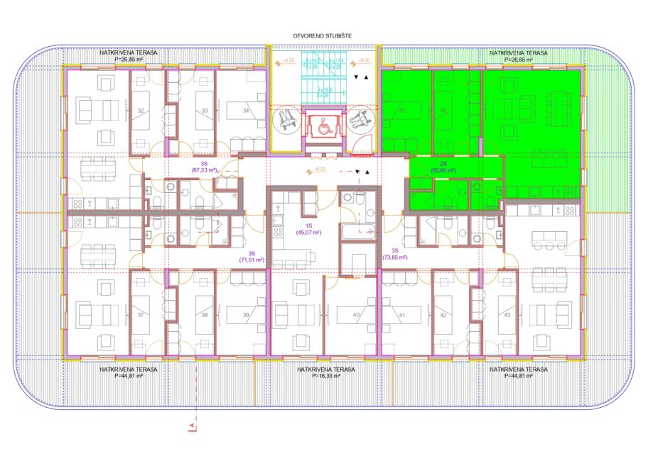 Raspored je izuzetno funkcionalan, s jasno odvojenim dnevnim i spavaćim dijelom stana, što osigurava privatnost i komfor.
