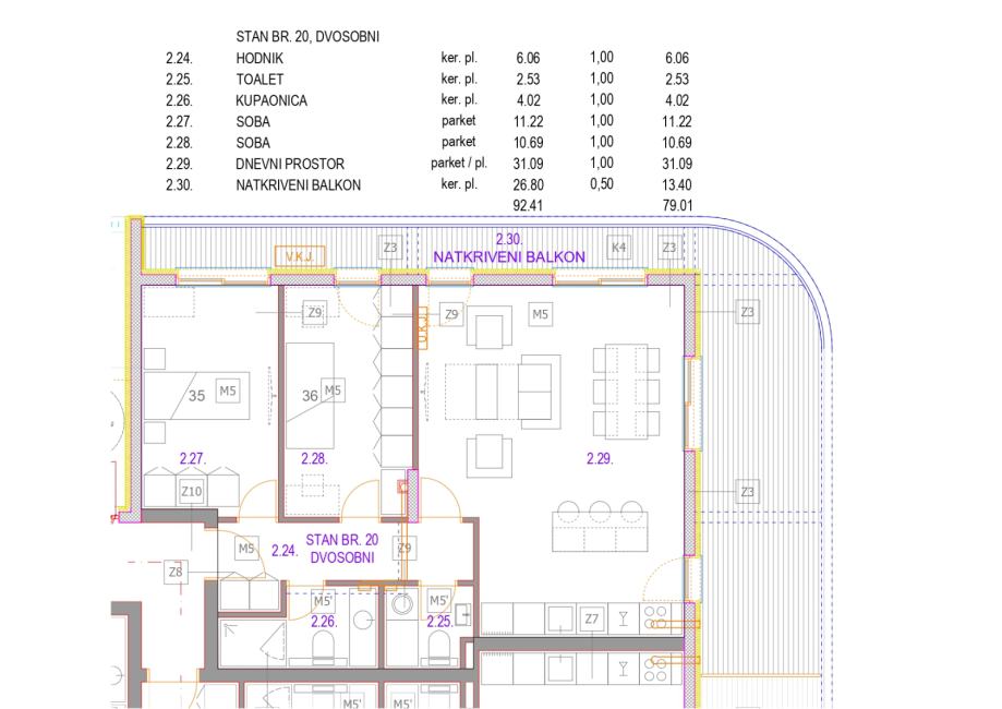 Ukupna stvarna površina: cca 92 m²