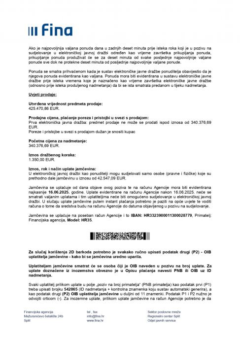 Elektronička javna dražba završava 09.07.2025.g. u 14:59:59 sati.
